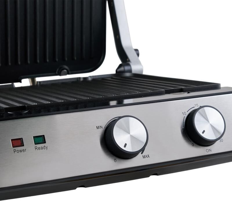 Параметры электросети, В/Гц 220-240 / 50-60 Мощность, Вт 2000 Цвет нержавеющая сталь, чёрный Материал корпуса бакелит+нержавеющая сталь Тип управления механический Настраиваемый таймер 30 мин Размер рабочей поверхности, мм 290x230 Размер изделия, мм 345x334x148 Вес, кг 4,25 Антипригарное покрытие на водной основе Режим барбекю открытие на 180° Регулируемый термостат Функция пресса Таймер до 30 минут Съемный поддон для сока и масла Удобная ручка с защитой от нагревания Защита от перегрева