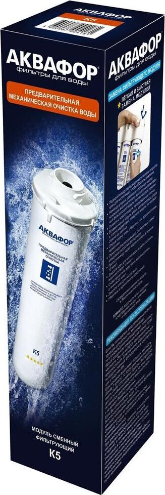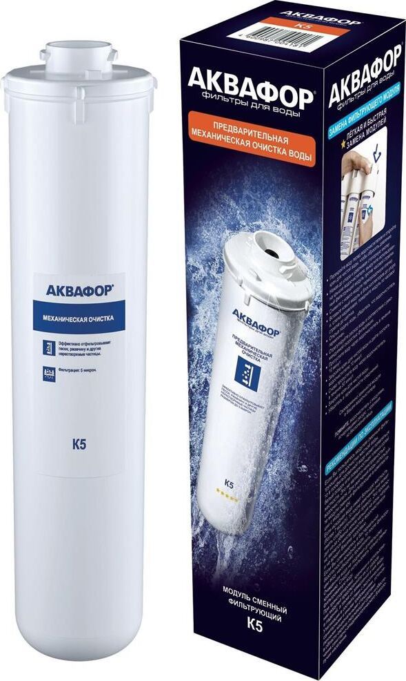 АКВАФОР Модуль сменный фильтрующий К5. Неразборный корпус сменного модуля для механической предочистки воды. Используется в системах АКВАФОР с отдельным краном. Может быть укомплектован картриджами различной плотности.