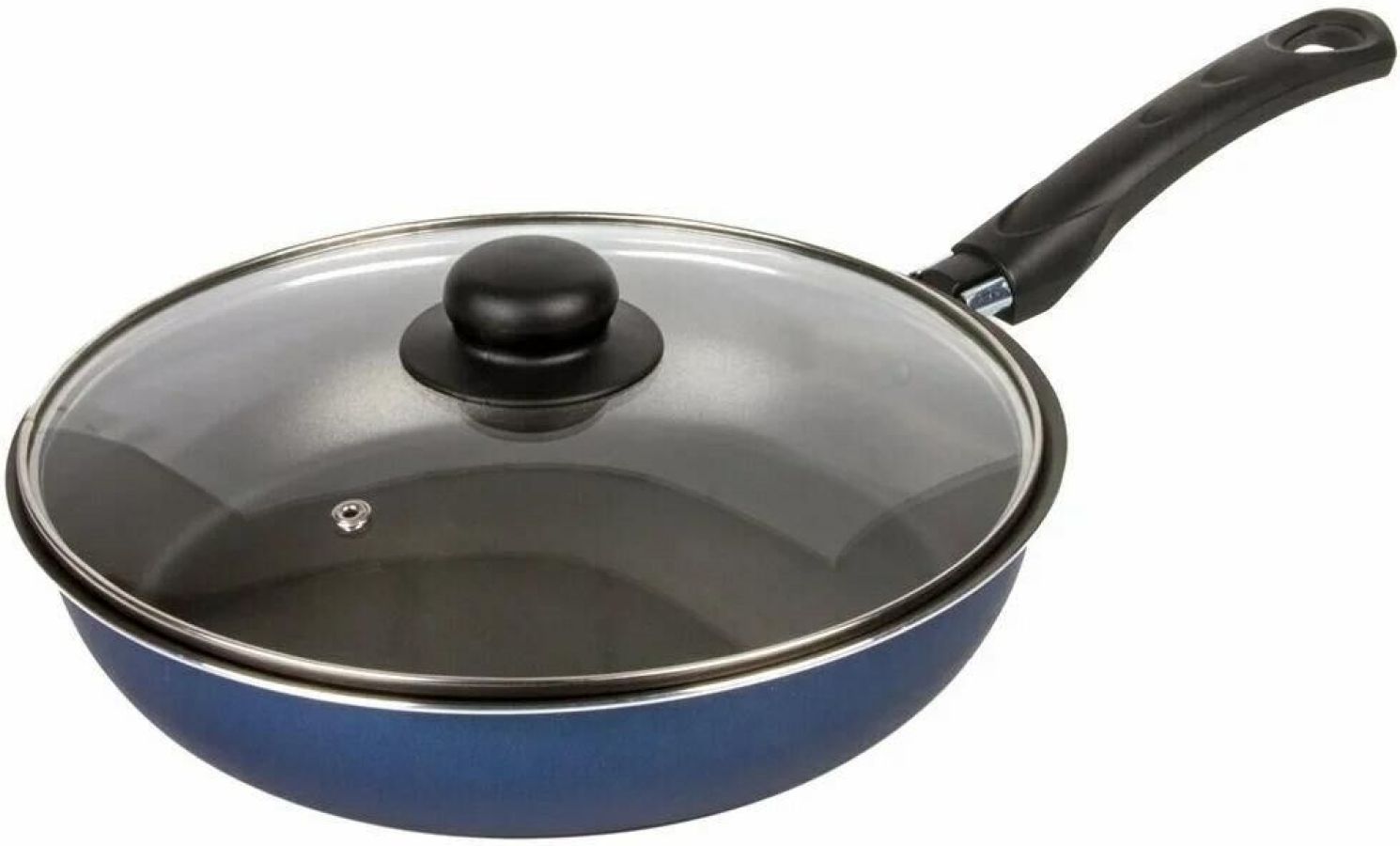 Сковорода Сатин диаметром 24 см со стеклянной крышкой простая, легкая и надежная посуда на каждый день. Европейское антипригарное покрытие внутри надежно защищает еду от пригорания, внешний слой декоративного покрытия также имеет антипригарные свойства, легко моется и долго сохраняет аккуратный вид и насыщенный синий цвет. Прочный корпус из штампованного алюминия с эргономичной бакелитовой ручкой делает использование сковороды удобным и безопасным.