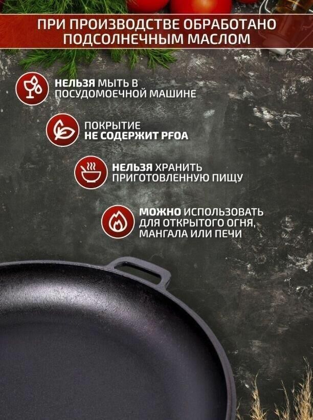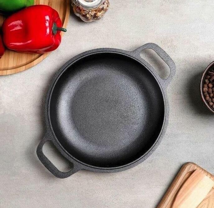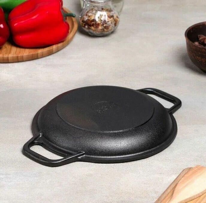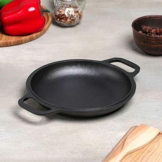 Крышка-Сковорода чугунная порционная с 2-мя литыми ручками. На чугунной сковородке для приготовления пищи получаются ароматные и вкусные блюда. Чугунная сковорода долговечна, износостойка. Объем, л./размер, см: 22см Материал: чугун Толщина дна: 3.8 Толщина стенок: 3.2 Источник тепла: Все виды плит