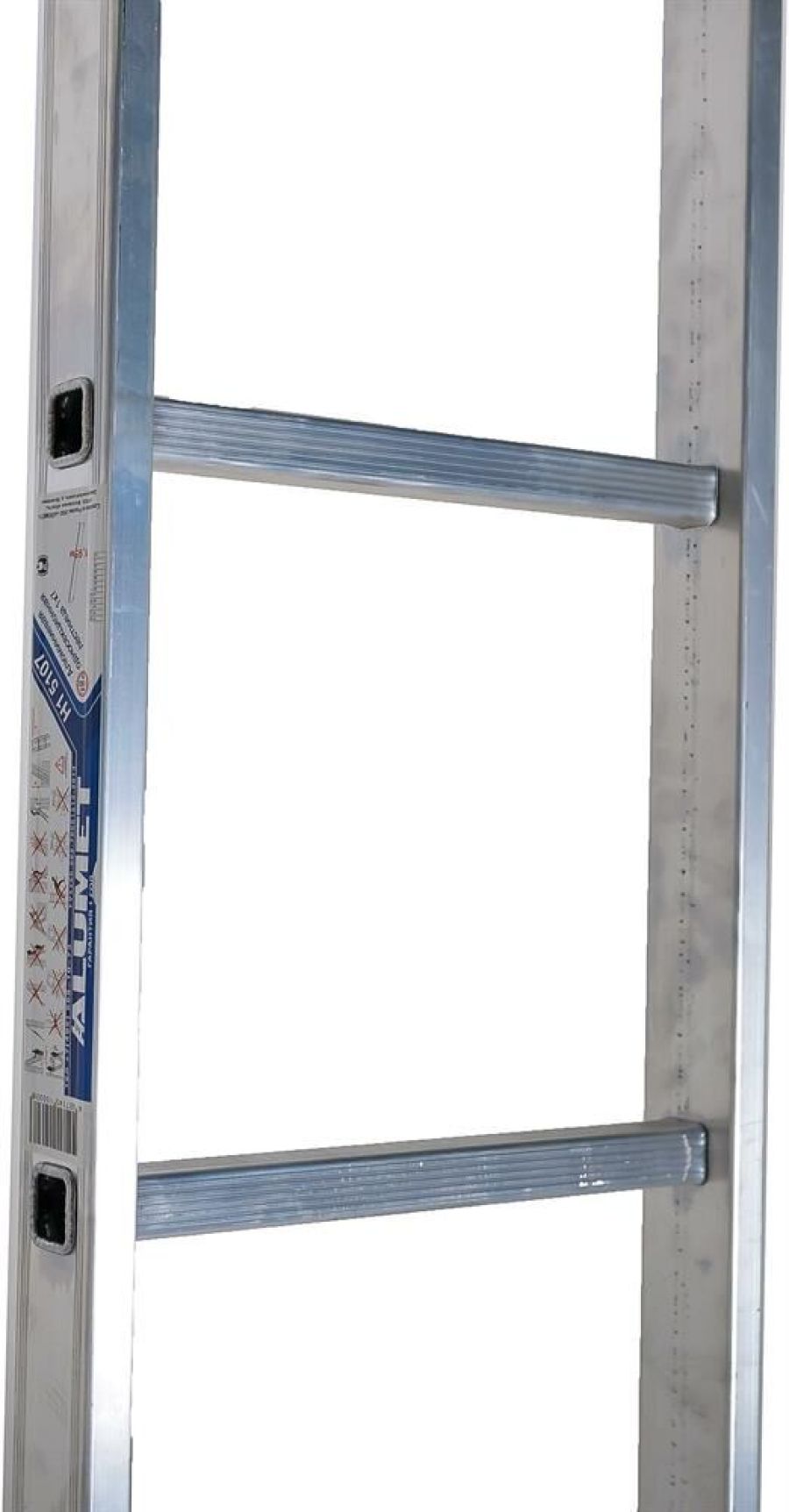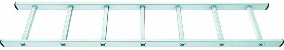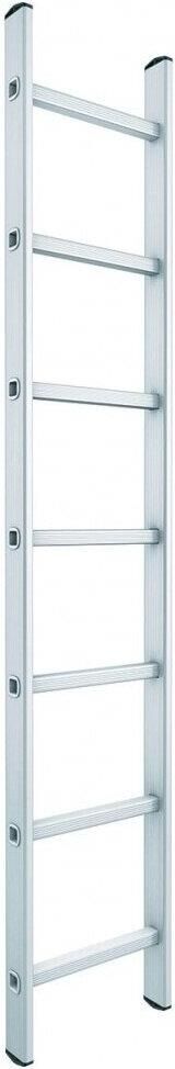Приставная лестница Сибртех 97827 с 7 ступенями не требует сборки — она готова к использованию сразу после приобретения. Изделие будет полезно в различных сферах, начиная от бытового применения, заканчивая эксплуатацией коммунальными службами и работниками магазинов.ПреимуществаРама выполнена из легкого, но прочного алюминиевого профиля прямоугольного сечения, способного выдержать нагрузку до 150 кг.Алюминий обладает коррозионной стойкостью, поэтому лестница не боится воздействия влаги.На каждой ступени имеется противоскользящее рифление для обеспечения безопасности работника.Пластиковые заглушки с рифлением защищают напольное покрытие от царапин и обеспечивают устойчивое положение лестницы.За счет компактных размеров 1971 х 333 х 55 мм лестницу удобно хранить и перевозить.