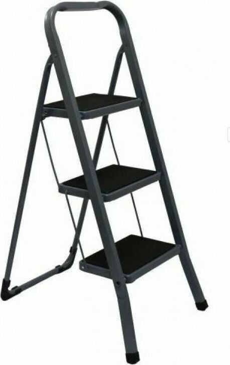 стальная 3 х ступ стремянка для бытовых ремонтных строительно монтажных работ серии "Jet Black"с порошковым покрытием от коррозии .Ступени с протвоскользящими ковриками. Рабочая высота 267,5 см. Высота ступени 67,5 см Размер ступеней 30х20 см Вес 5,25 кг и цвет угольно-черный.Максимальная нагрузка 120кг.
