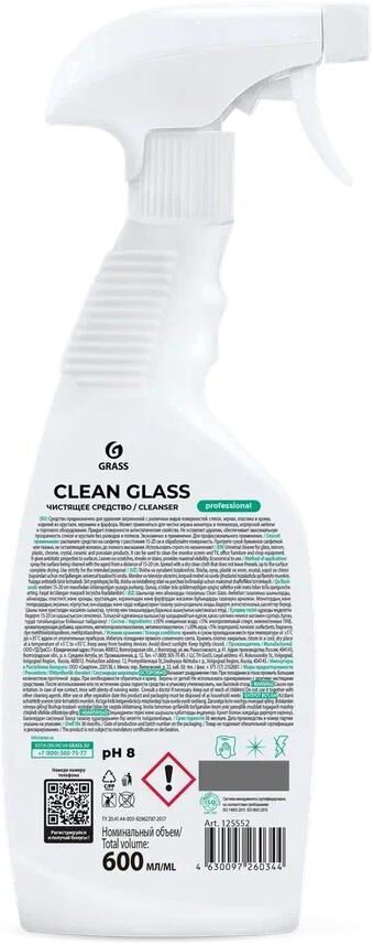 Очиститель стекол и зеркал "Clean Glass" Professional (флакон 600 мл) Средство предназначено для удаления загрязнений с различных видов поверхностей: стекол, зеркал, пластика и хрома, изделий из хрусталя, керамики и фарфора. Может применяться для чистки экрана монитора и телевизора, корпусной мебели и торгового оборудования. Придает поверхности антистатические свойства. Не оставляет царапин, обеспечивает максимальную прозрачность стекол и хрусталя без разводов и потеков. Экономично в применении. Состав: ≥30% очищенная вода; <5%: изопропиловый спирт, неионогенные ПАВ, ароматизирующая добавка, краситель, метилхлороизотиазолинон, метилизотиазолинон. Способ применения: распылите средство на салфетку с расстояния 15-20 см и обработайте поверхность. Протрите сухой бумажной салфеткой или тканью, не оставляющей волокон, до полного высыхания. Использовать строго по назначению