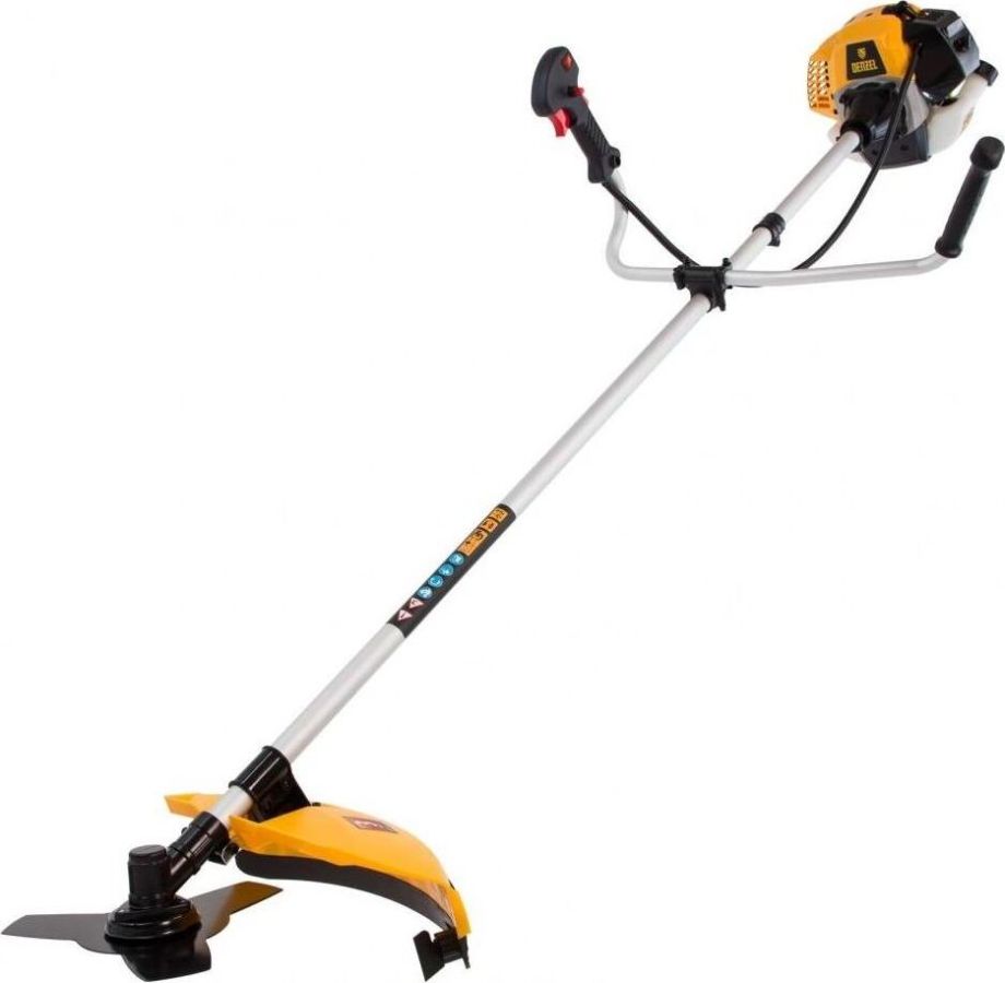 Объем двигателя, см 43 Мощность, л. с. 2,5 Бренд DENZEL Гарантия 3 года Крепление шпули M10 x 1.25 LH Максимальный диаметр лески, мм 3 Объем топливного бака, л 0,85 Потребление топлива при максимальной нагрузке, л/ч 1,2 Режущий элемент леска, нож Рукоятка велосипедная Стартер ручной Страна бренда Германия GERMANIYA Страна производства Китай KITAY Тактность двигателя 2-х тактный Тип двигателя бензиновый Тип катушки полуавтоматическая Тип штанги неразъемная Топливо смесь АИ-92 и масла Уровень шума, дБ 110 Частота вращения шпинделя, об/мин 9500 Ширина скашивания леской, мм 420 Ширина скашивания ножом, мм 255