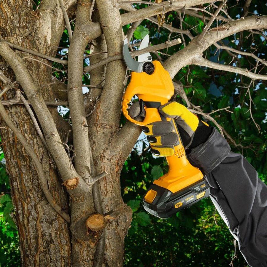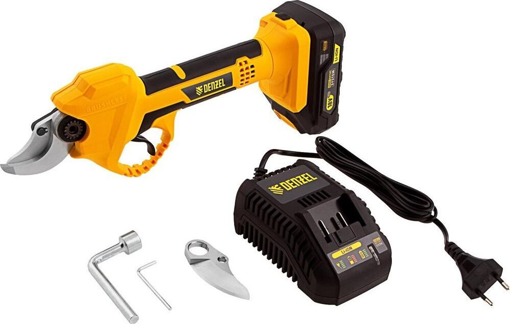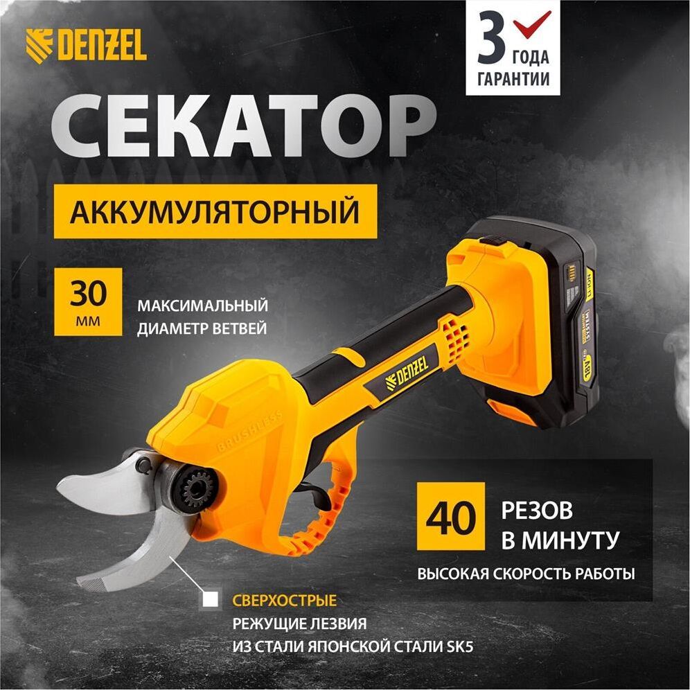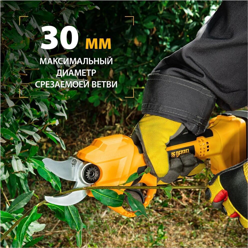 Аккумуляторный секатор Denzel CP-30 с батареей 18В Li-Ion предназначен для срезания ветвей толщиной до 30 мм. Станет незаменимым помощником для владельцев загородных домов, дач и плодовых питомников. Компактный бесщеточный электродвигатель обеспечивает эффективную работу инструмента. Секатор работает от аккумулятора, поэтому будет полезен при работе в труднодоступных местах и отдаленных участках сада.