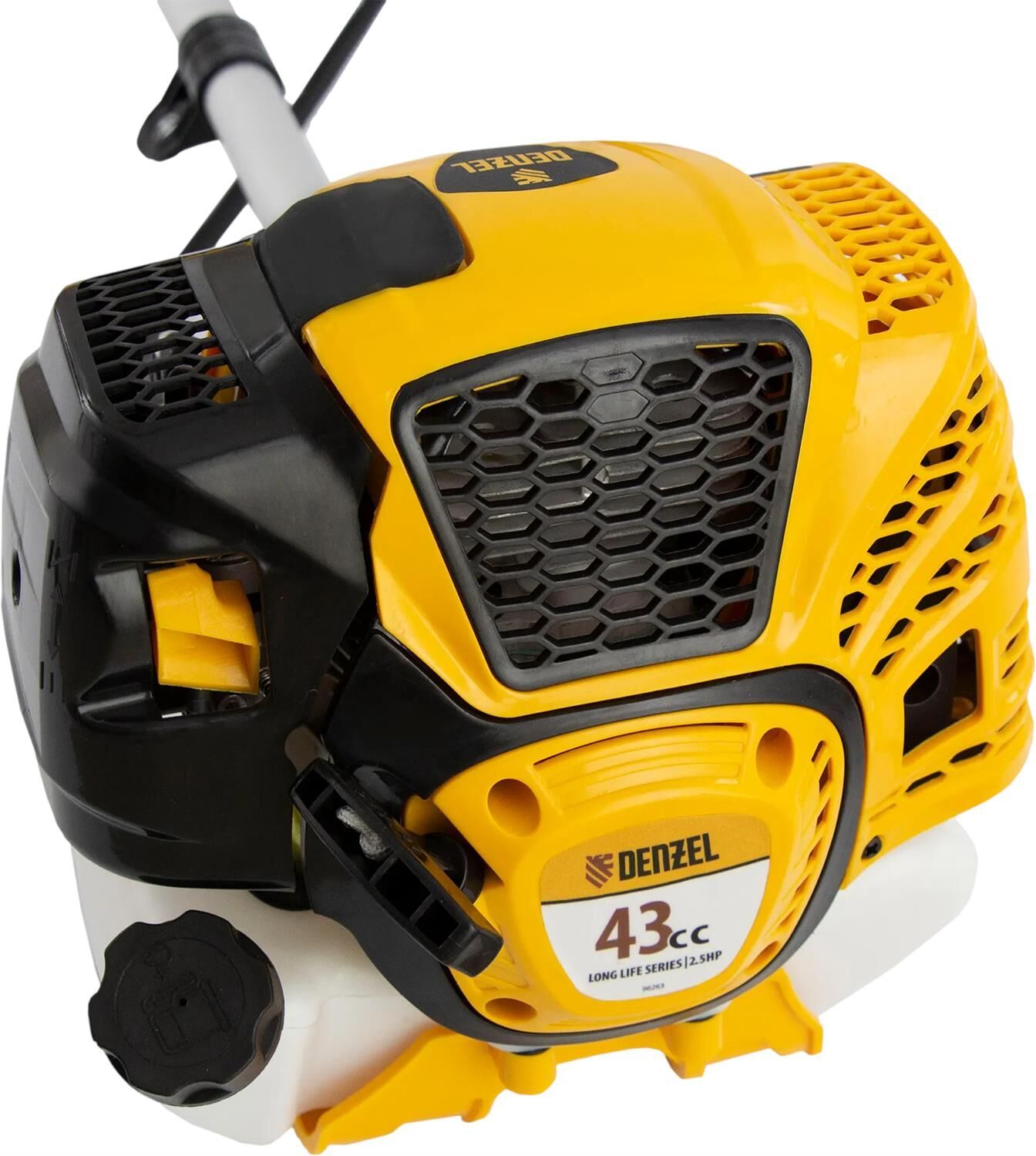 Тип двигателя бензиновый. Тактность двигателя двухтактный. Мощность 2.5 л. с. Максимальный диаметр лески 3 мм. Ширина скашивания леской 420 мм. Ширина скашивания ножом 255 мм. Крепление шпули M10 x 1.25 LH. Объем двигателя 43 см3. Режущий элемент нож, леска. Тип топлива смесь АИ-92 и масла. Тип ручки велосипедная. Тип катушки полуавтоматическая. Посадочный диаметр для установки диска 25.4 мм. Объем топливного бака 1.2 л. Частота вращения шпинделя 9500 об/мин. Уровень звукового давления 110 дБ. Потребление топлива при максимальной нагрузке 1.2 л/ч. Тип штанги неразъемная. Стартер ручной.