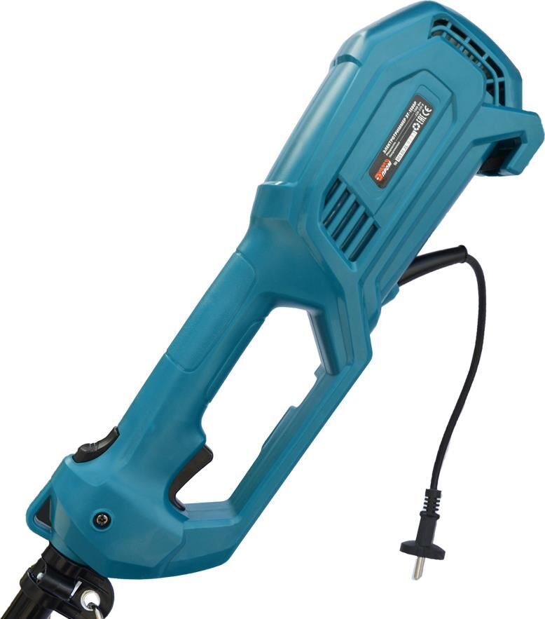 Тип переносной. Ширина скашивания 380 см. Двигатель электрический. Мощность электродвигателя 1500 Вт. Мощность электродвигателя 1500 Вт. Расположение двигателя верхнее. Потребляемая мощность 1500 Вт. Обороты двигателя 10000. Конструкция Штанга прямая. Форма рукоятки D-образная. Режущий элемент триммера леска и нож. Толщина лески 1.6 мм. Плечевой ремень.