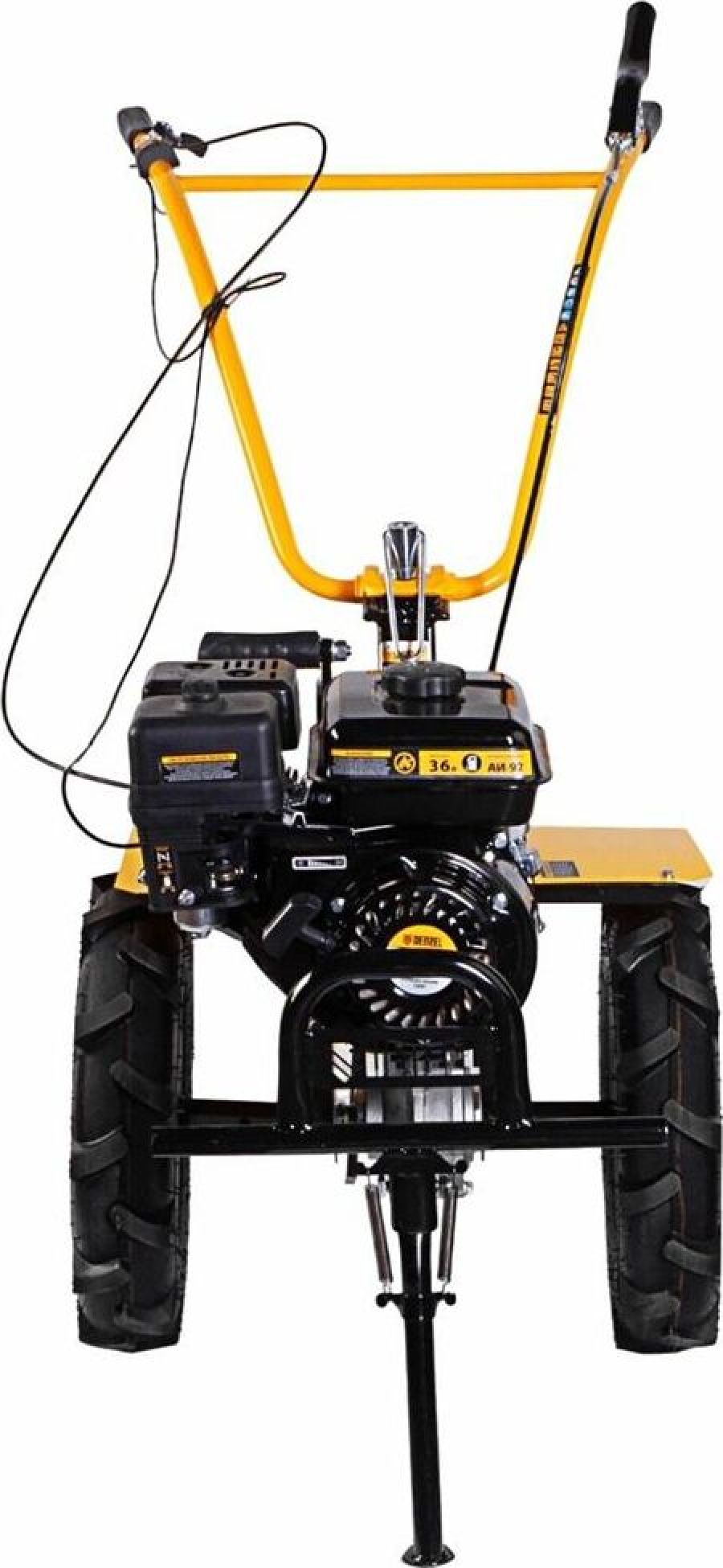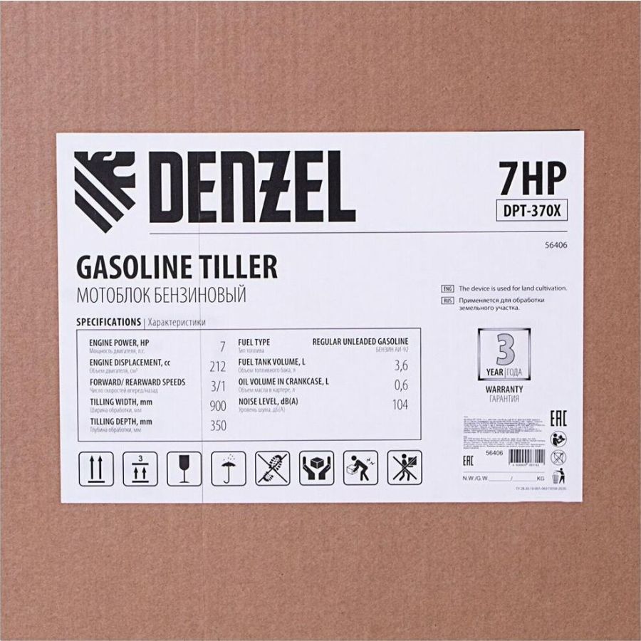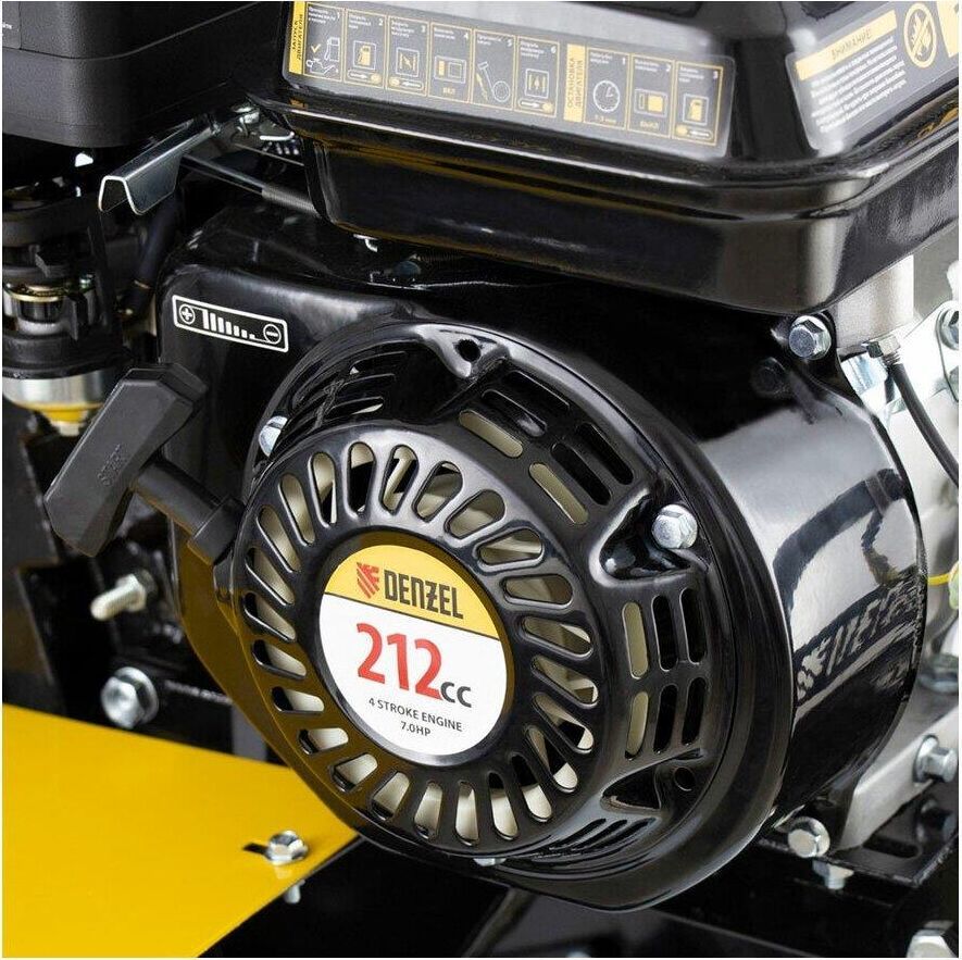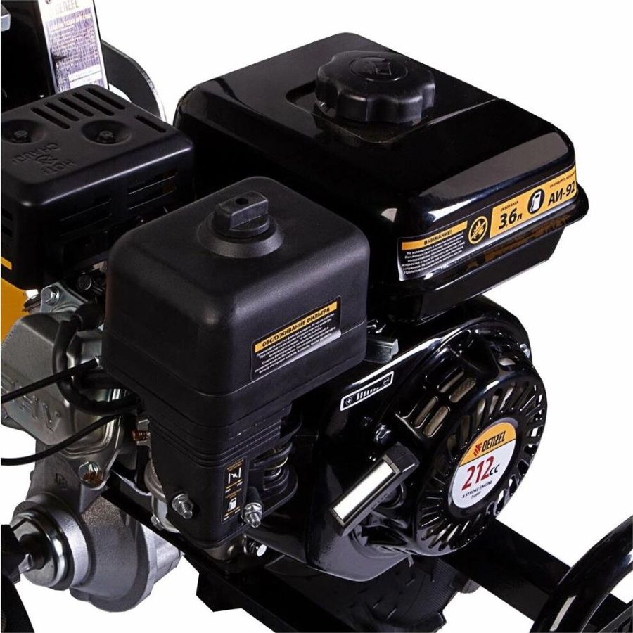 Тип двигателя четырехтактный. Максимальная мощность двигателя 7 л.с.. Объем двигателя 212 см3. Расход топлива 1 л/ч. Уровень шума 104 дБ. Стартер ручной. Количество фрез 24. Максимальная ширина обработки 90 см. Диаметр фрез 35 см. Механизм сцепления многодисковое. Тип ступицы шестигранник 23 мм. Тип топлива АИ-92. Объем топливного бака 3.6 л. Объем масла в картере 0.6 л. Объем масла в редукторе 1.33 л. Тип редуктора шестеренчатый. Типоразмер колес 4.00-10. Число передач вперед 3/назад 1. Передача мощности на активное навесное оборудование вал отбора мощности. Особенности колеса в комплекте.