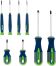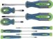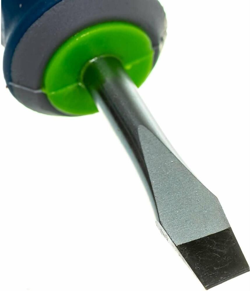 Универсальный набор отверток Сибртех 13375 включает 8 предметов из стали CrV с трехкомпонентными рукоятками, рассчитанных на бытовое использование. Отвертки предназначены для монтажа/демонтажа стандартных крепежных элементов и микровинтов с профилем SL и PH. Длина стержней 38-100 мм позволяет работать в узких пространствах и небольших углублениях.ПреимуществаСтержни из стали CrV имеют хромовое покрытие, а наконечники — фосфатное, поэтому инструменты обладают устойчивостью к коррозии и деформации.Рабочие части отверток прошли дополнительную закалку до твердости 50-52 HRC, что повышает сопротивляемость нагрузкам.Рукоятки прорезинены и имеют насечки, благодаря чему не проскальзывают в руке.Подвесная пластиковая карта позволяет удобно разместить набор на рабочем месте.