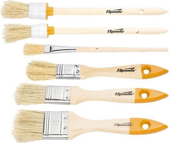 Тип плоская. Щетина натуральная. Материал рукоятки древесина. Количество предметов 6.