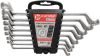 Набор накидных ключей Калибр ННК-8П, арт.121029) состоит из 8 предметов. Каждый ключ изготовлен из высокопрочной CrV стали. Для удобства хранения набор комплектуется пластиковым подвесом. При помощи накидных ключей Калибр можно без труда демонтировать различные шестигранные резьбовые соединения. Ключи: 6х7, 8х9, 10х11, 12х13, 14х15, 16х17, 18х19, 20х22 мм