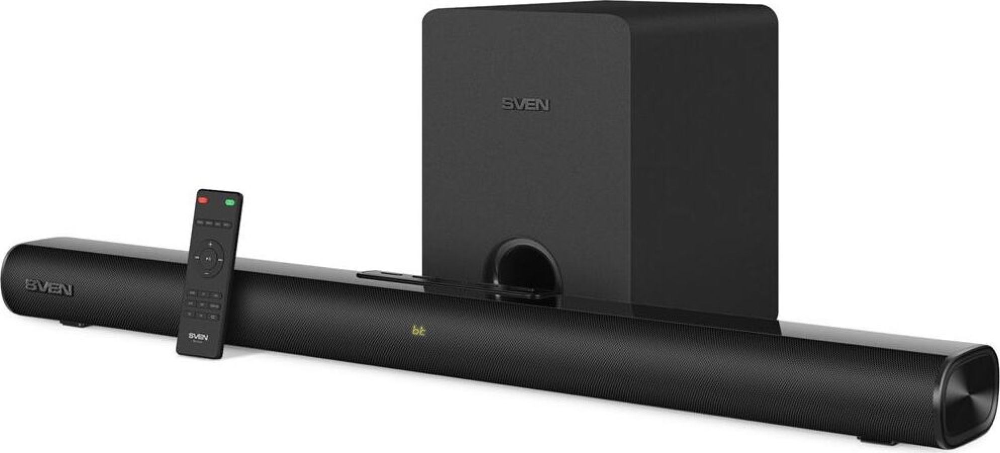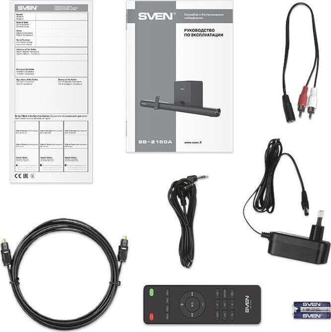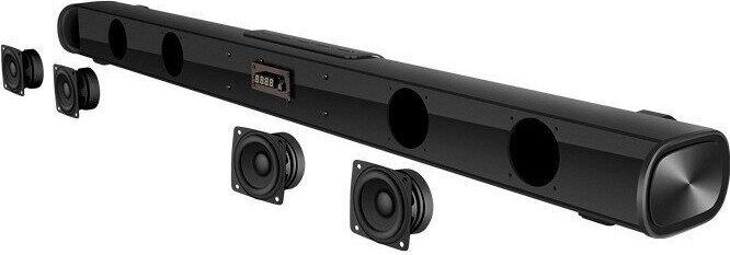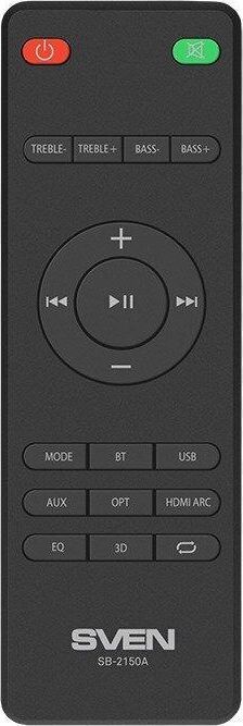 Максимальная мощность, Вт 180 сабвуфер: 100 саундбар: 80 (2 ? 40) Частотный диапазон, Гц сабвуфер: 50 – 150 саундбар: 150 – 20 000 Размеры динамиков, мм сабвуфер: O 145 саундбар: 4 ? O 46 (широкочастотные) Пульт ДУ есть Напряжение питания ~230 В, 50 Гц Номинальный ток потребления, А сабвуфер: 0,03 саундбар: 0,03 Тип соединения Bluetooth Радиус действия, м до 10 Размеры изделия, мм сабвуфер: 200 ? 305 ? 300 саундбар: 900 ? 102 ? 70 Вес, кг сабвуфер: 3,83 саундбар: 1,82 Цвет черный