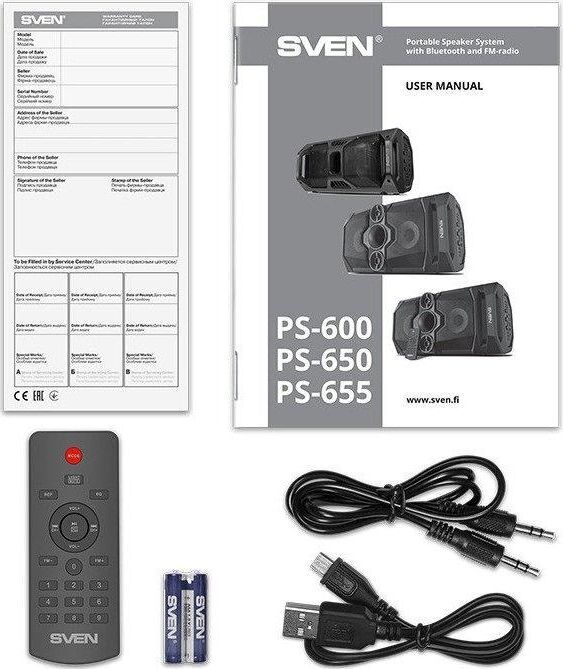 ыходная мощность (RMS), Вт 50 (2 x 25) Частотный диапазон, Гц 45 – 22 000 Диапазон частот тюнера, МГц 87.5 – 108 Размеры динамиков, мм ВЧ: O 70, НЧ: O 140 Беспроводная передача сигнала по Bluetooth да Воспроизведение музыки с носителей памяти USB, microSD Источник питания литий-ионный aккумулятор: 4400 мA · час (2 шт.) / USB: DC 5 V Тип соединения Bluetooth, проводной Радиус действия, м до 10 Размеры изделия, мм 470 х 240 х 240