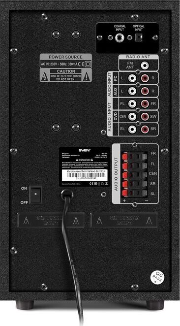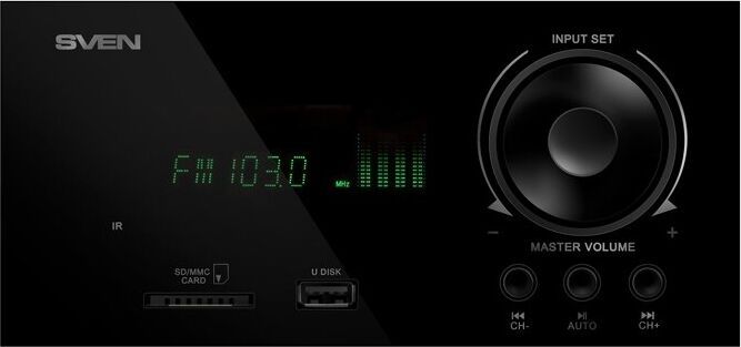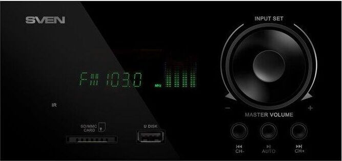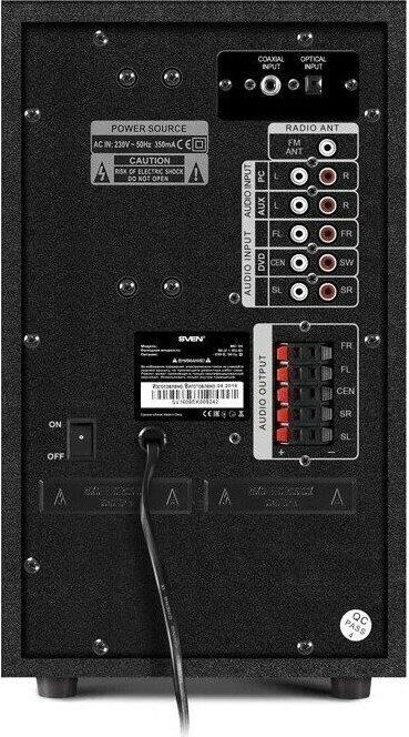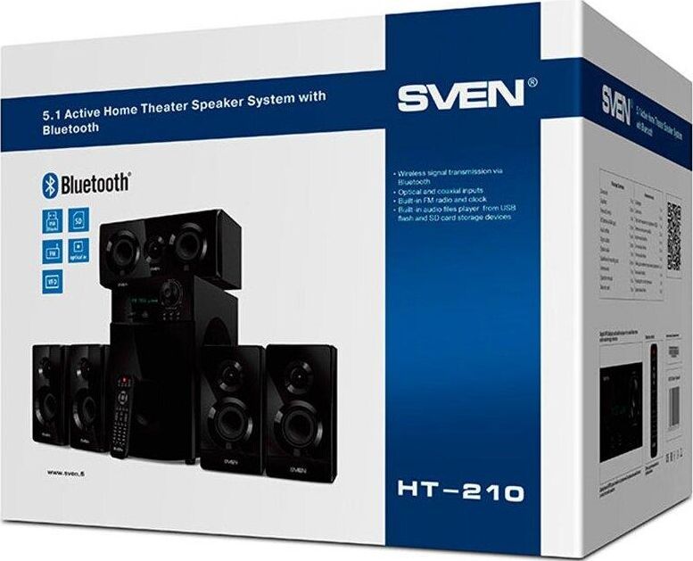 Акустическая система, суммарная мощность (RMS), Вт 125, диапазон частот FM-тюнера, Мгц 87,0 – 108,0, Вт 75 (5 х 15), встроенное FM-радио, информационный VFD-дисплей, встроенный проигрыватель, Bluetooth, материал корпуса - дерево (MDF), встроенные часы, пульт.