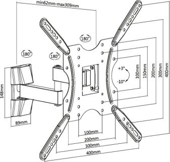 Вид кронштейна универсальный; тонкий; без наклона Стандарт VESA 400x400; 400x300; 400x200; 200x400; 300x300; 300x200; 200x300; 200x200; 200x100; 100x200 Регулировка кронштейна фиксированный; без наклона Минимальная диагональ 32; 43; 47" Максимальная диагональ 60"; 55"; 50" Нагрузка максимальная 30 кг Варианты установки настенный Страна производства Китай Комплектация кронштейн; комплект крепежа; подробная инструкция Габариты Вес с упаковкой (кг) 0.7 кг Ширина предмета 42 см Глубина предмета 2.5 см Высота предмета 42 см Длина упаковки 49 см Высота упаковки 3 см Ширина упаковки 19 см Описание Тонкий универсальный фиксированный кронштейн для крепления LED, OLED, QLED и LCD телевизоров и мониторов до 60 дюймов. • Надежная стальная конструкция, нагрузка до 30 кг. • Толщина металла 1 мм. • Минимальное расстояние от стены 25 мм. • Универсальный размер VESA от 50x50 мм до 400x400 мм в любых вариантах. • Кронштейн комплектуется подробной инструкцией и набором крепежа.