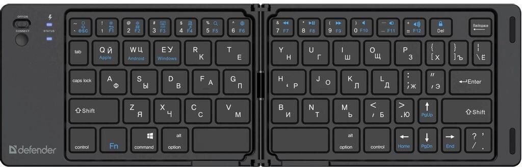 Беспроводная офисная клавиатура с функцией подключения по Bluetooth. Главная особенность модели - компактная складная конструкция, благодаря чему клавиатуру удобно брать в поездки.