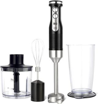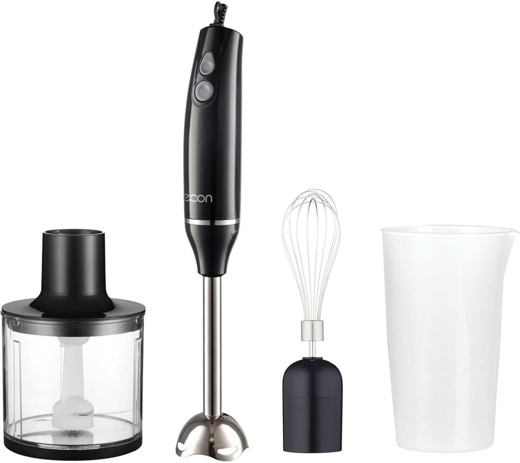 БЛЕНДЕР ПОГРУЖНОЙ( набор - 4 предмета, максимальная мощность: 1200 Вт, 2 скорости с функцией "ТУРБО", двигатель с пониженной вибрацией и уровнем шума, специальная петля для удобного хранения, ножи из нержавеющей стали. насадка-блендер из нержавеющей стали, насадка-венчик из нержавеющей стали, измельчитель: 500 мл, мерный стакан: 700 мл