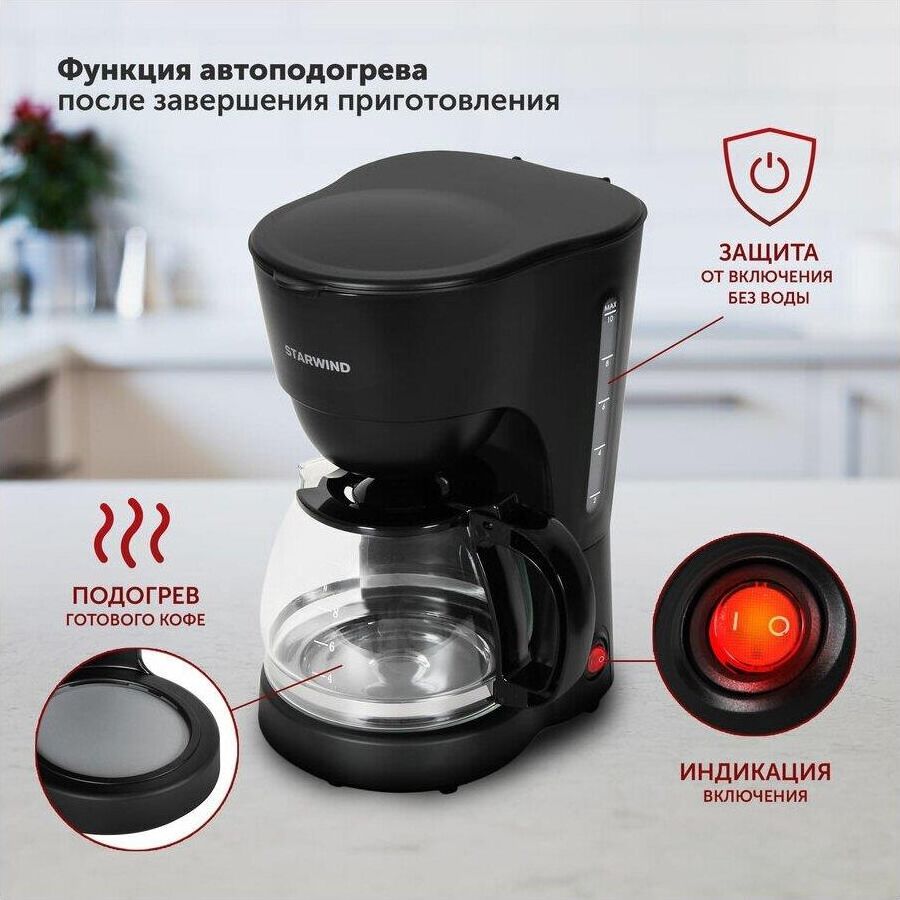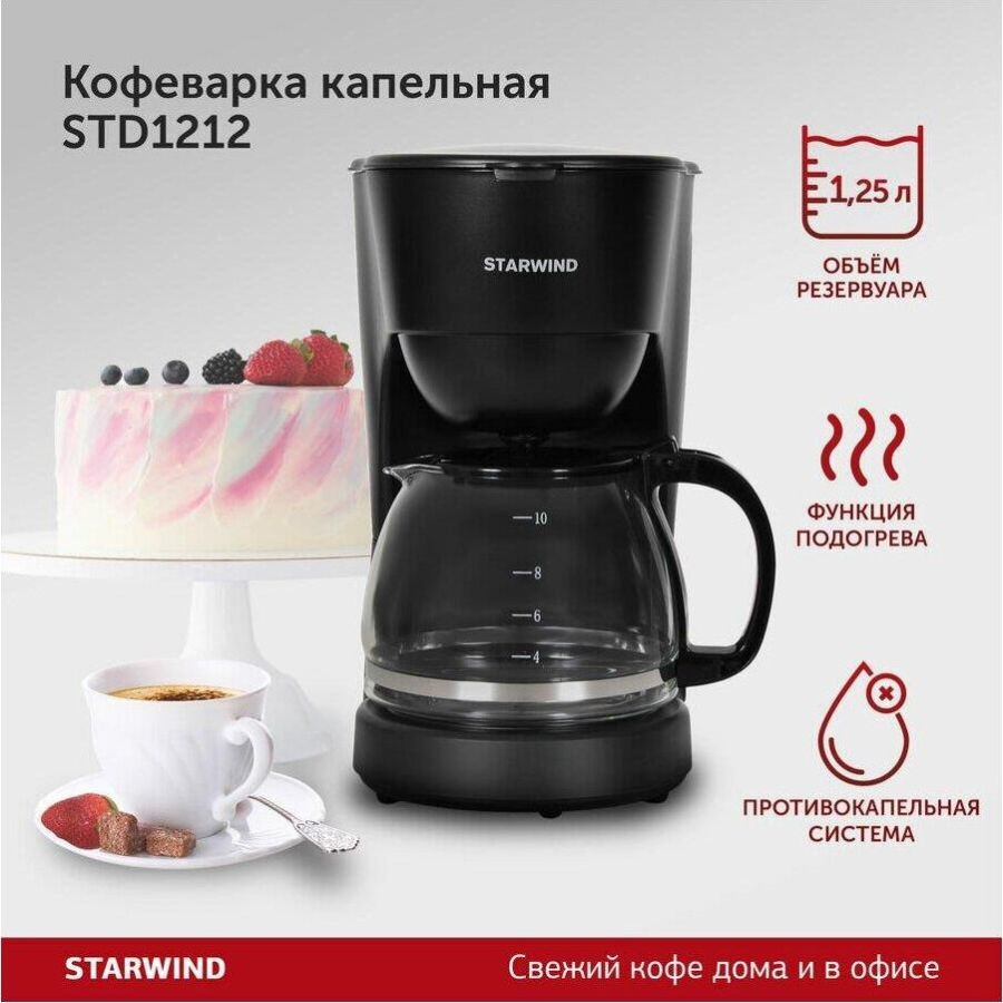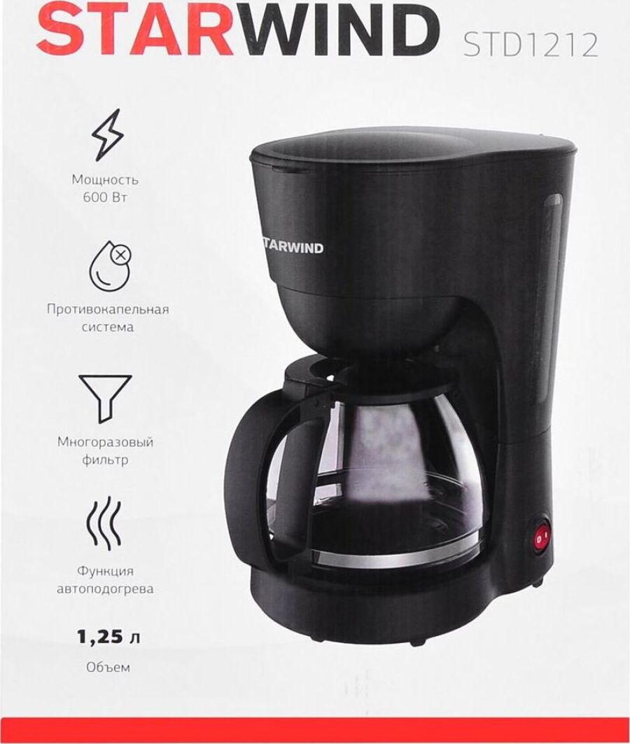 Тип кофеварки капельная Используемый кофе молотый Тип нагревателя бойлер Мощность 750 Вт Резервуар для воды 1.25 л Резервуар для готового кофе 1.25 л Регулировка крепости напитка Индикатор уровня воды Противокапельная система Материал корпуса пластик Цвет черный Гарантия 12 мес.