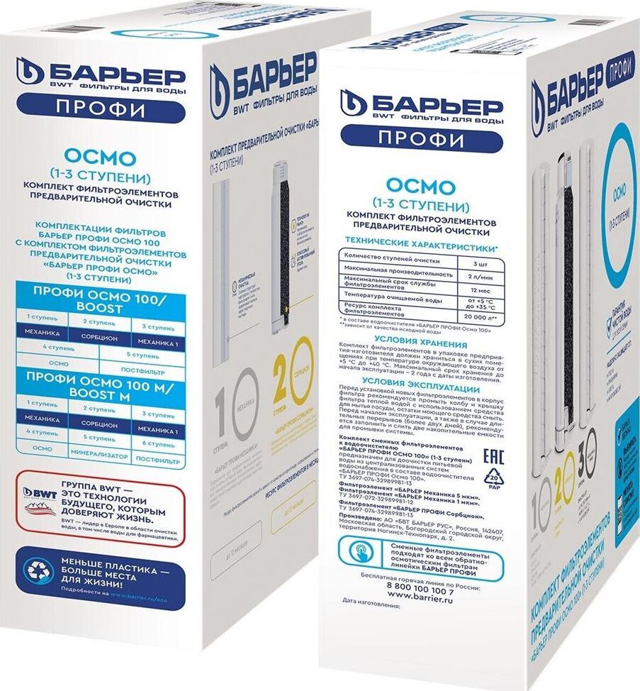 Комплект фильтроэлементов предварительной очистки для пятиступенчатой системы обратного осмоса. Такие картриджи для очистки воды удаляют механические взвеси и нейтрализуют соединения хлора. Подходит для ПРОФИ Осмо 100, ПРОФИ STANDARD, ПРОФИ HARD, ПРОФИ COMPLEX