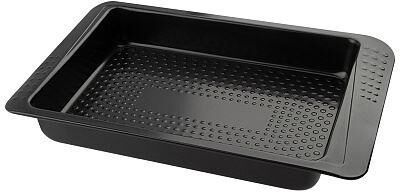 Форма для запекания с рельефным дном Размер внешний: 32,5*21,5*4,5 см Размер внутренний: 26,5*19,2*4,4 см Толщина стали 0,4 мм Цвет: черный Материал: углеродистая сталь с антипригарным покрытием * проста и удобна в использовании * не изменяет цвет и вкус пищи * легко моется * антипригарное покрытие исключает необходимость использования большого количества масла * подходит для мини печей и духовок * используется для запекания пищи в фольге, на бумаге для выпекания, а так же непосредственно в форме (в данном случае рекомендуем использовать небольшое кол-во масла)