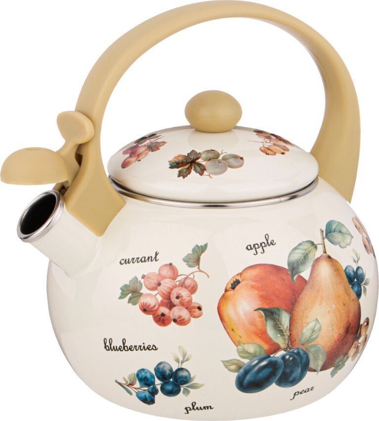 ЧАЙНИК ЭМАЛИРОВАННЫЙ СО СВИСТКОМ, СЕРИЯ "ФРУКТЫ" 2,2Л, ИНДУКЦИОННОЕ ДНО