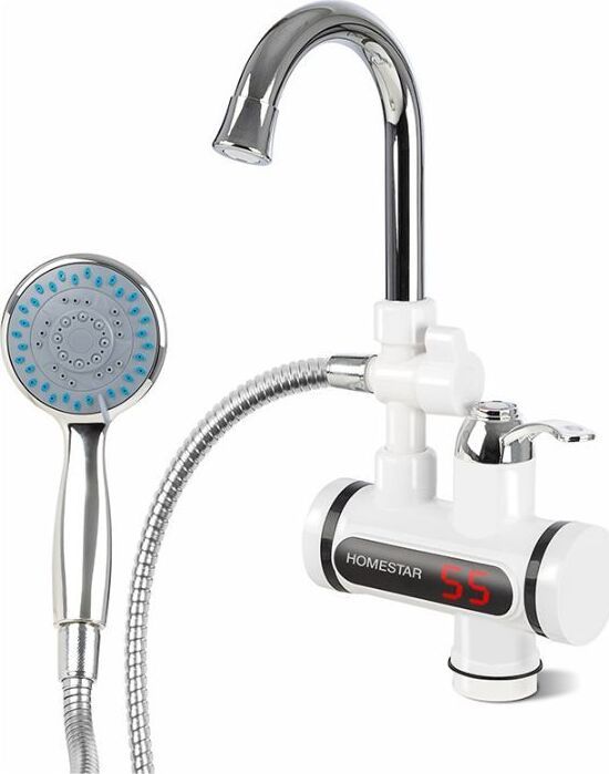 Тип водонагревателя: проточный Электрический Вертикальная установка Регулировка температуры 30-60 C Дисплей В комплекте: кран, душевая лейка Мощность 3000Вт 220-240В, 50-60Гц