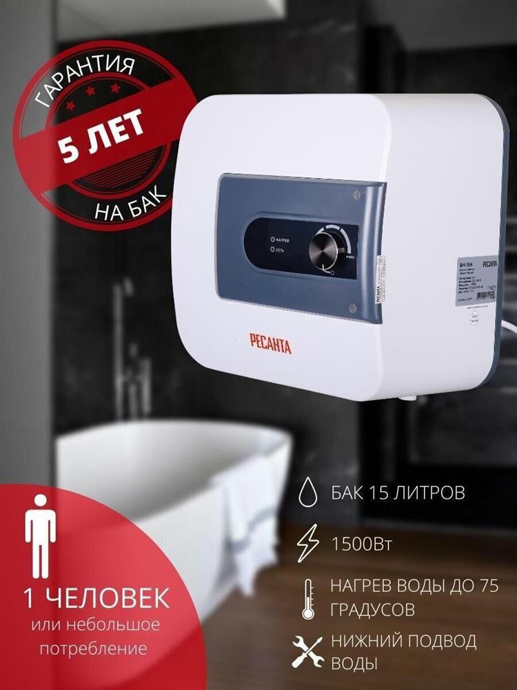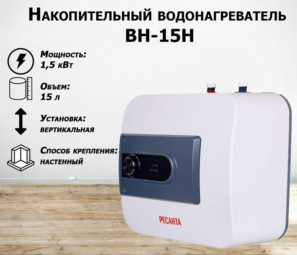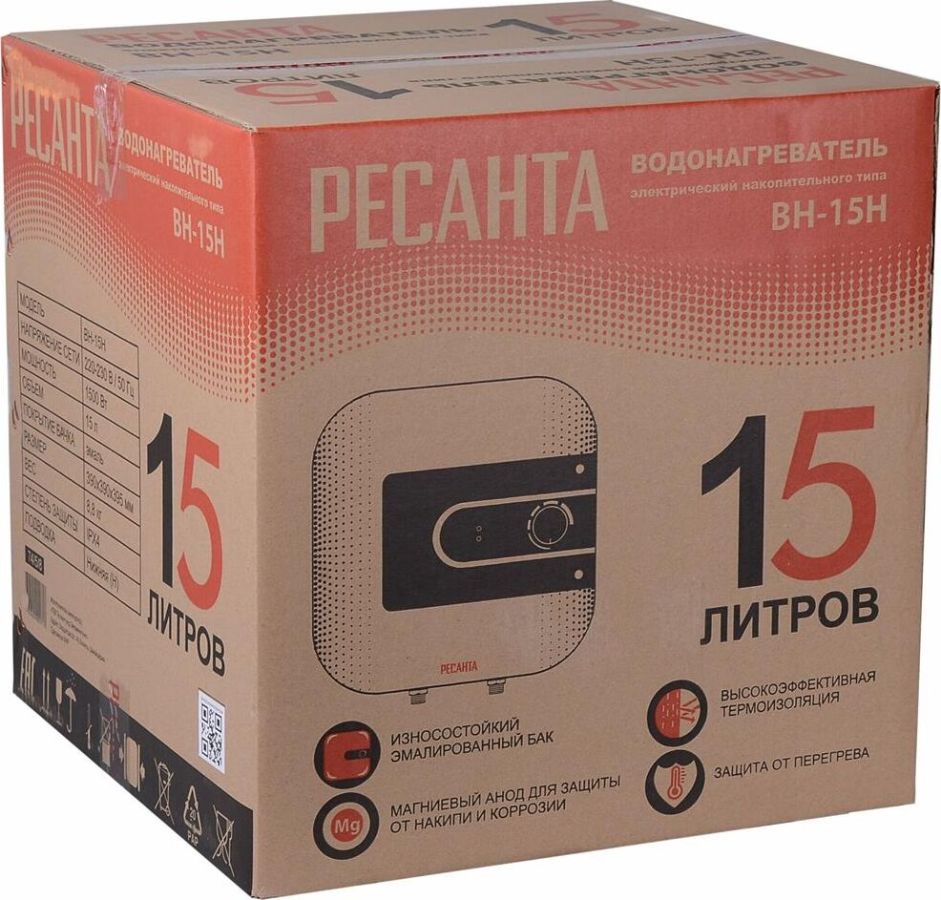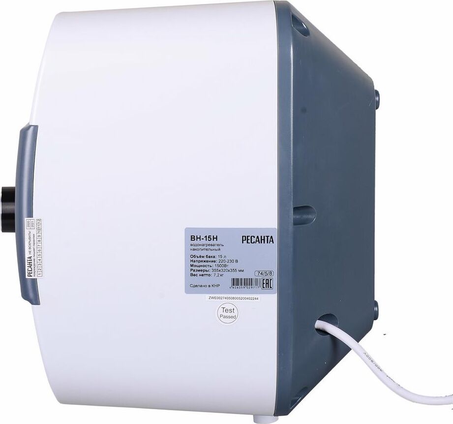 Электропитание 220-230В, 50 Гц. Максимальная температура нагрева До 75 °С. Подвод воды снизу. Мощность 1500 Вт. Тип крепления над раковиной. Объем бака 15 л. Управление механическое. Материал бака эмалированная сталь. Дисплей нет. УЗО нет. Страна производства Китай. Тип накопительный. Время нагрева* (до максимальной мощности в идеальных условиях) 31 мин. Размеры,мм 355х320х355. Вес нетто, кг 7,2. Вес, кг 8.72 кг. Габариты упаковки 0.39х 0.39х 0.39 м.