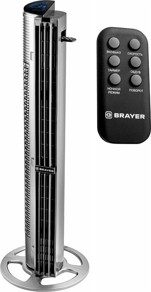 4977BR Колонный вентилятор BRAYER, Сенсор.упр.,пульт ДУ,вращение70°,мощ-ть75Вт, LED-дисплей