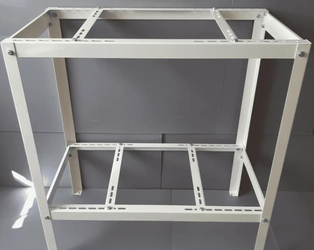 Подставка для кондиционера двухъярусная, 930х520х1020мм Вес, кг 16 Максимальная нагрузка, кг 100 Разборная универсальная двухъярусная подставка используется для монтажа двух внешних блоков сплит-систем. Приспособление подходит к применению с широким спектром моделей кондиционеров, благодаря своей конструкции с регулируемыми планками, которые можно установить под необходимые размеры внешнего блока. Подставка обеспечивает надежное крепление, а также минимизирует возможные вибрации. Подс