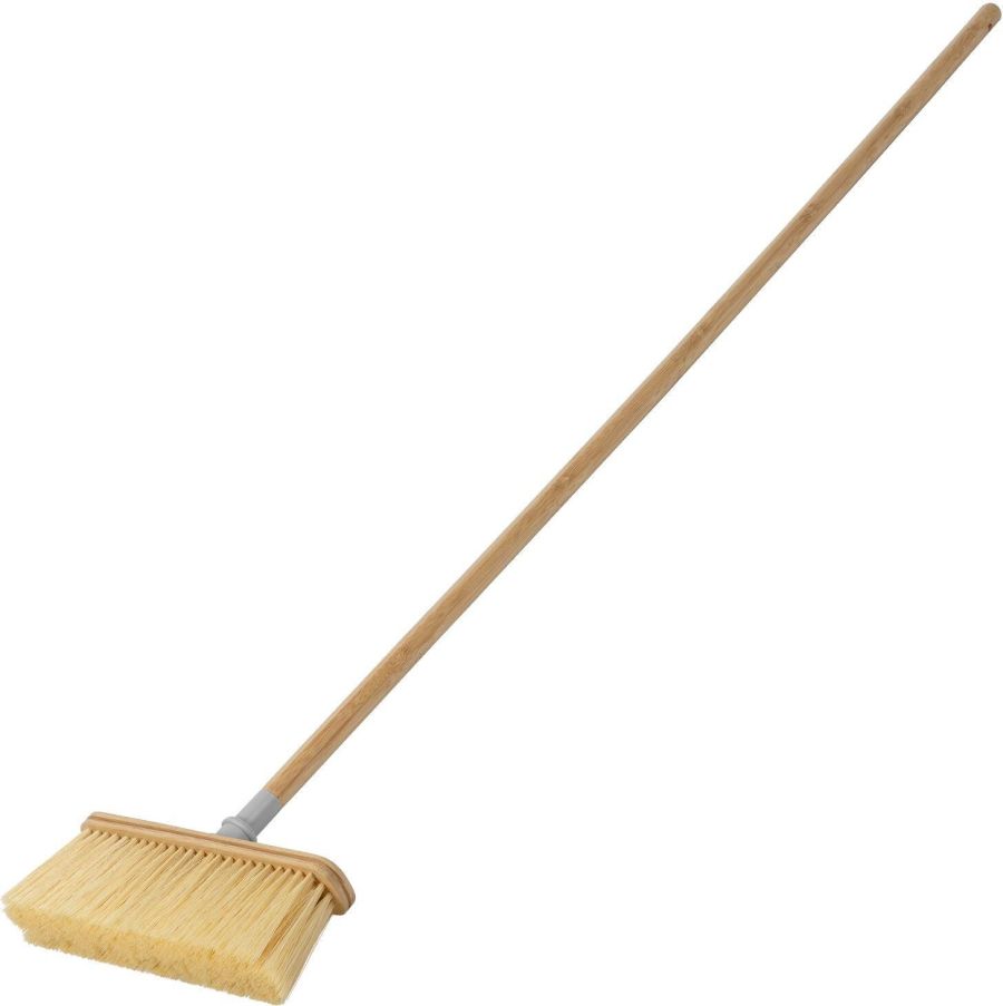 Бамбуковая щетка для подметания пола Palisad Home 93579 длиной 117 мм, с черенком и рабочей частью шириной 26,5 см, предназначена для сухой уборки различных видов напольных покрытий: паркета, ламината, плитки, линолеума и других. Колодка и черенок из высококачественного бамбука не впитывают влагу, поэтому щетка прослужит долго. Преимущества Деликатная уборка — щетина из высококачественного сырья не царапает напольное покрытие. Долговечность — щетина из полимерного материала отличается прочностью, на надежно закреплена в колодке и устойчива к истиранию. Эргономичность — легкая удлиненная рукоятка позволяет снизить нагрузку на спину. Удобное хранение — в рукоятке предусмотрено отверстие для подвешивания щетки.