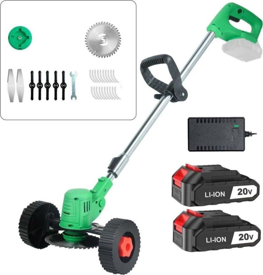 Диаметр резки: 150 мм. Время зарядки аккумулятора: 120 мин. Время работы без нагрузки, мин: 60-80 мин. Мощность: 650 Вт. Скорость холостого хода: 10000 об/мин. Резьба шпинделя: 4М. Комплектация*: Триммер - 1 шт. Защитный кожух - 1 шт. Дополнительная рукоятка - 1 шт. Винт - 1 шт. Крышка винта - 1 шт. Гайки - 6 шт (входят в комплект). Металлический нож - 2 шт. Пластиковый нож - 5 шт. Аккумулятор - 2 шт. Зарядное устройство - 1 шт. Пильный диск - 1 шт. Гаечный ключ - 1 шт . Комплект колес - 1 шт (2 колеса). Леска в пакетах - 20 шт. Катушка - 1 шт. Руководство по эксплуатации - 1 шт. *Поставляется в частично разобранном виде.