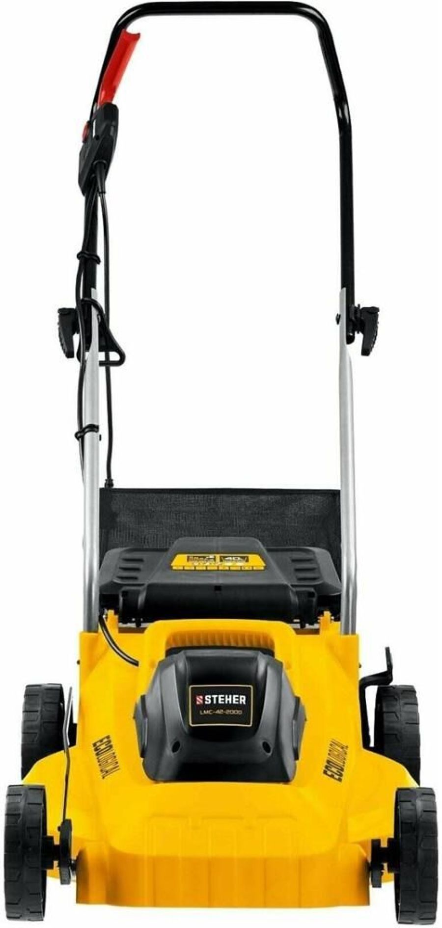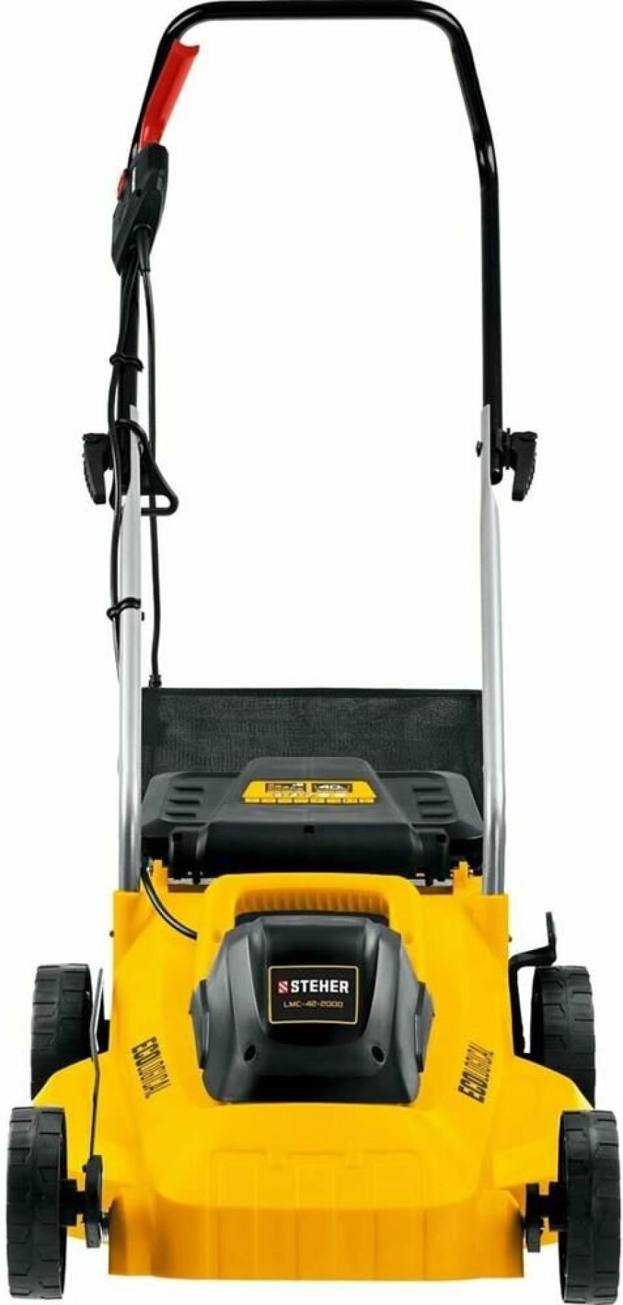 Мощность двигатея, Вт 2000. Частота вращения шпиндея, об/мин 3200. Ширина скашивания, мм 420. Мин. высота скашивания, мм 25. Макс. высота скашивания, мм 75. Количество ступеней регулировки 5. Регулировка высоты кошения центральная. Травосборник есть. Объем травосборника, л 40. Тип травосборника мягкий. Мульчирование нет. Выброс травы назад. Самостоятельное движение нет. Материал корпуса пластик. Тип рукоятки складная. Напряжение, В/Гц 220±10% /50. Габариты, см 72x48x29. Масса изделия, кг 11.