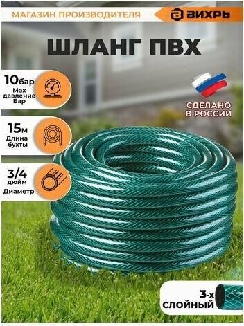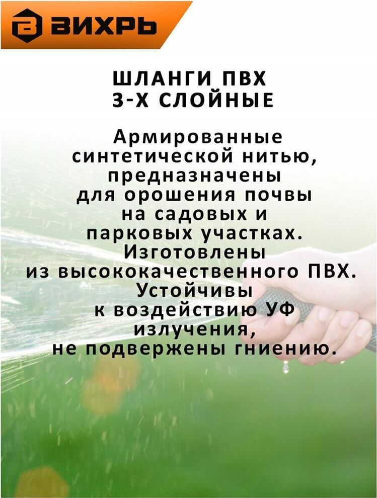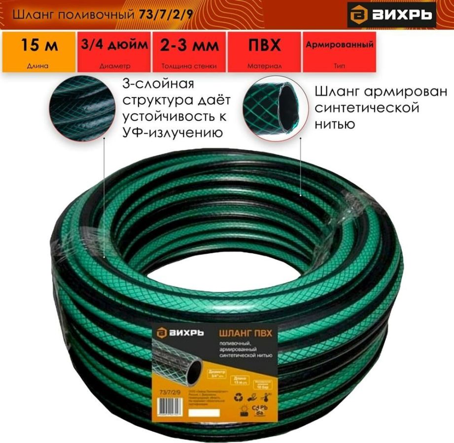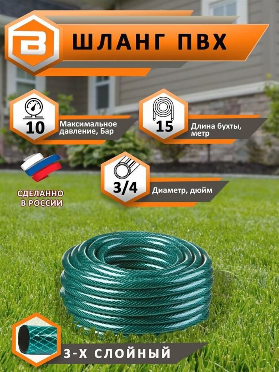 Шланг поливочный изготовлен с применением трехслойной армированной синтетической нити. Шланг достаточно эластичен, великолепно сохраняет свою форму и не скручивается. Длина, м 15. Диаметр, мм 19.