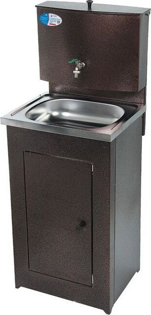 Бак - оцинкованная сталь, Объем бака - 20 л, раковина - нерж. Сталь, тумба - черный металл. Размеры умывальника: 55 х 150 х 45. Вес: 12 кг. Преимущества умывальника «Акватекс» перед аналогичными моделями других производителей: Гальваническое цинковое покрытие бака (новая технология); Продукция сертифицирована; Металлический шаровый кран; Усиленная стойка бака; Отсутствие петель (источник появления коррозии); Тумба на ножках (циркуляция воздуха под тумбой сохраняет ЛКП от преждевременной коррозии); Увеличенная дверца тумбы (для удобства выемки отливной тары); Увеличенная высота тумбы; Коробка евростандарта с ручками (удобство транспортировки). Пробка для слива воды в баке.