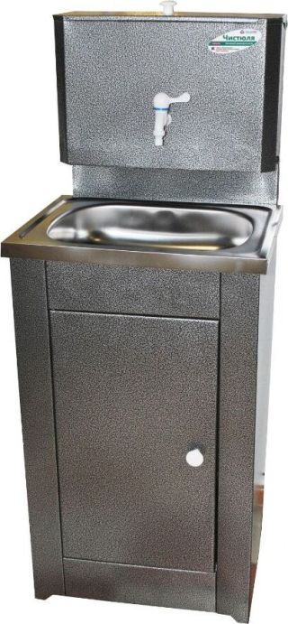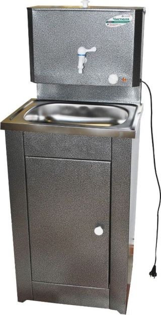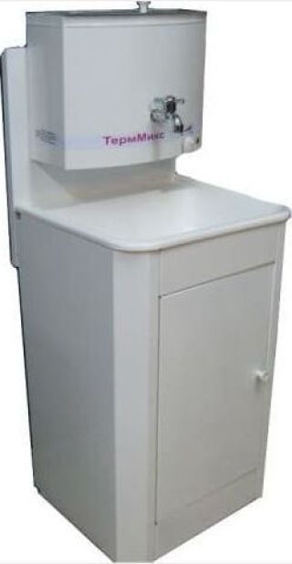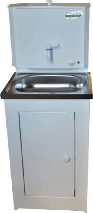 Бак - оцинкованная сталь, Объем бака - 17 л, раковина - нерж. сталь, тумба - черный металл Мощность нагрева - 1.25 кВт, Время нагрева до 60 град. - 30 мин., Номинальное напряжение - 220 В Бак имеет удобное устройство - пробку для слива воды. Плавная регулировка нагрева до 60 градусов. Размер умывальника в сборе: ширина – 50 см, глубина - 43 см. Нержавеющая раковина 50 х 40 см. Тумба поставляется в разобранном виде в коробке размером 80 х 54 х 20 см, вес 12 кг. Преимущества умывальника «Акватекс» перед аналогичными моделями других производителей: Гальваническое цинковое покрытие бака (новая технология); Продукция сертифицирована; Металлический шаровый кран; Плавная регулировка температуры воды; Усиленная стойка бака; Отсутствие петель (источник появления коррозии); Тумба на ножках (циркуляция воздуха под тумбой сохраняет ЛКП от преждевременной коррозии); Увеличенная дверца тумбы (для удобства выемки отливной тары); Увеличенная высота тумбы;