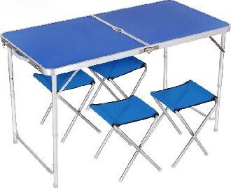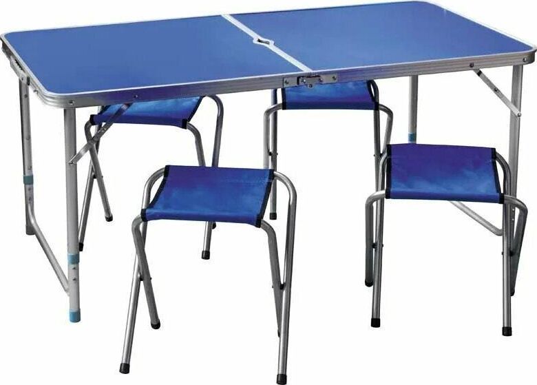 Размер стола: 120*60*56cm/70 см Возможность установки зонта (отверстие в столешнице) Максимальная нагрузка на стол 30 кг Материал стола: алюминий, столешница – МДФ Диаметр трубы 25/22 мм, толщина 0,8 мм 4 стула в комплекте Максимальная нагрузка на стул 80 кг Размер стула: 34*32*29 см Диаметр трубы 1,8см, толщина 0,8 мм Материал: 600x300D оксфорд, сталь Комплект упакован в термоусадку Вес комплекта: 6,4кг.