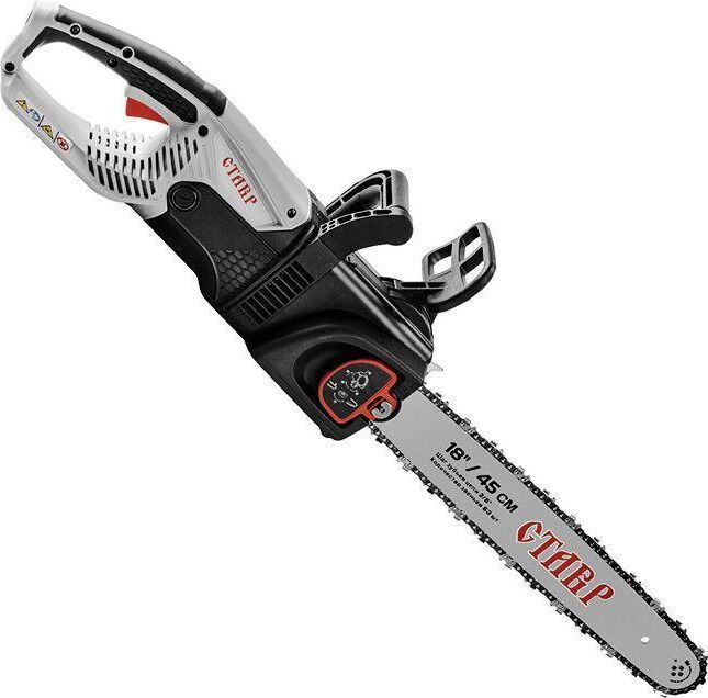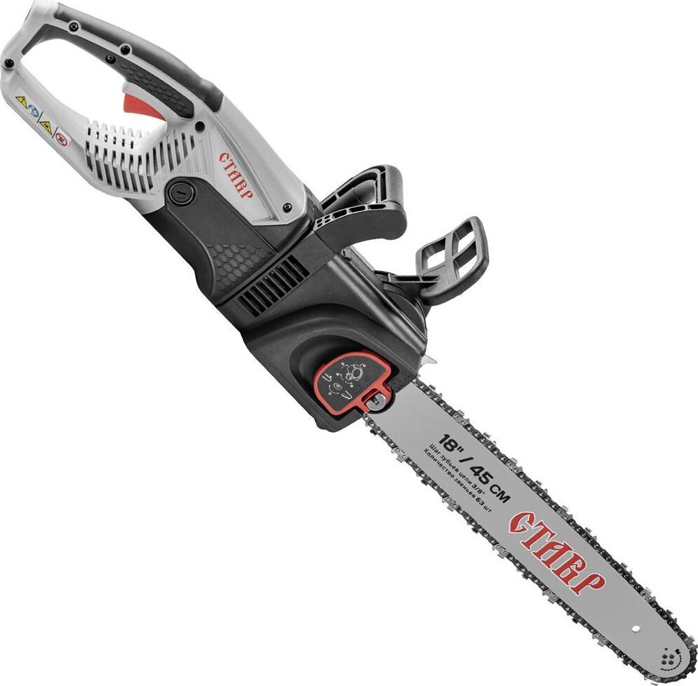 Ставр ПЦЭ-45/2800БК Пила цепная ЭЛЕКТРИЧЕСКАЯ, 2800 Вт, шина 45см, поперечное расположение мотора, 4200об/мин, скорость движения цепи 7 м/с, цепь 18" 3/8" 0,050" 63 звена, тормоз цепи, система бесключевого натяжения цепи, автоматическая смазка цепи, плавный пуск, коробка
