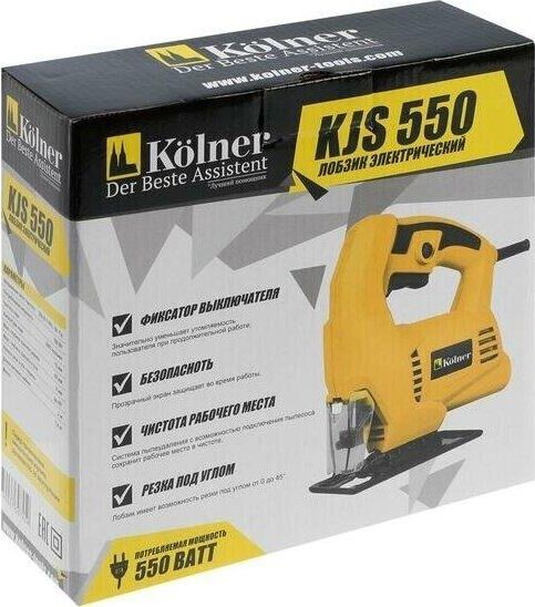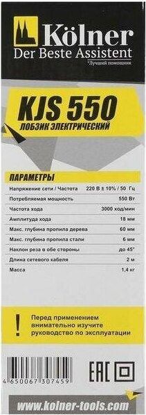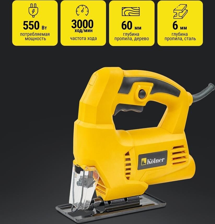 KOLNER KJS 550 (10шт) Лобзик электрический 550 Вт, частота ходов 3000 ходов/мин, амплитуда полотна 18 мм, максимальная глубина пропила дерева 60мм, наклон реза 45град