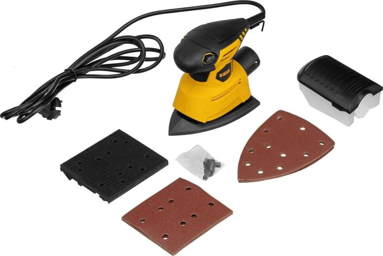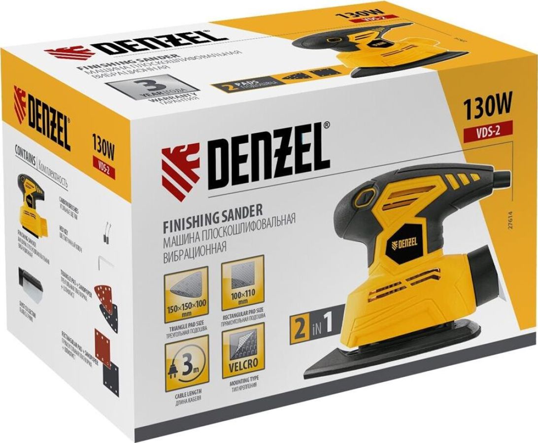 Компактная финишная шлифовальная машина Denzel предназначена для сухого шлифования открытых плоских поверхностей, деревянных, пластмассовых и металлических деталей, в том числе с грунтовым или лакокрасочным покрытием, а также со следами поверхностной коррозии материала.Номинальная мощность 130 Вт. Частота колебаний подошвы 14000 кол/мин. Размер подошвы 150х150х100 / 100х110 мм. Напряжение сети 230 В. Длина кабеля 3 м. Крепление шлифлиста Velcro.