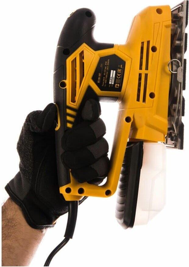 Универсальная вибрационная машина Denzel предназначена для сухого шлифования открытых плоских поверхностей, деревянных, пластмассовых и металлических деталей, в том числе с грунтовым или лакокрасочным покрытием, а также со следами поверхностной коррозии материала.Номинальная мощность 240 Вт. Частота колебаний подошвы 6000-11000 кол/мин. Размер подошвы 90 х 187 мм. Напряжение сети 230 В. Длина кабеля 3 м. Крепление шлифлиста Velcro.