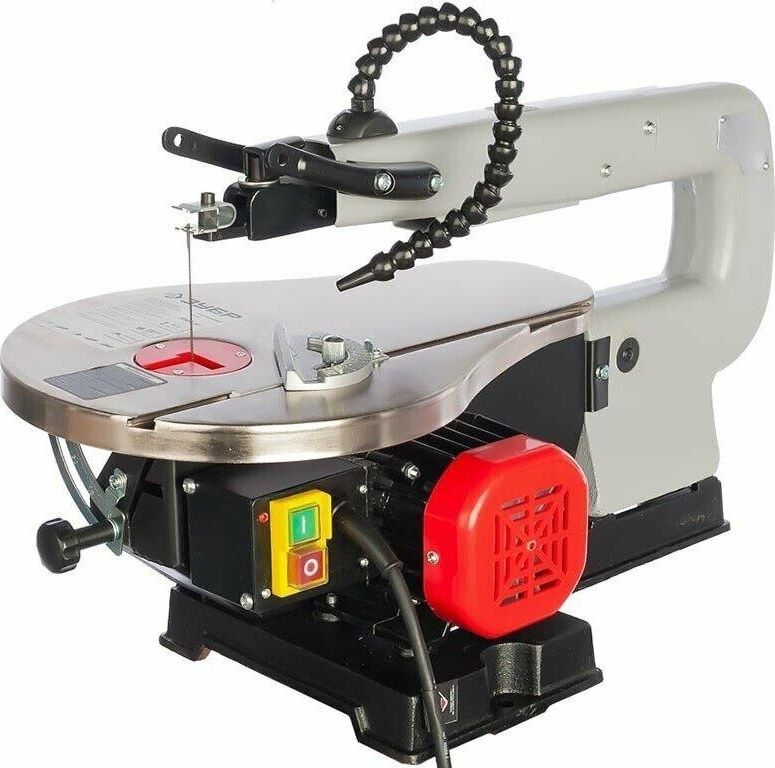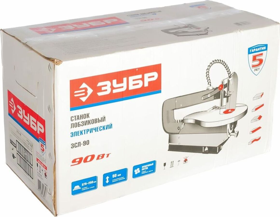 Лобзиковый станок ЗУБР ЗСЛ-90 используется на небольших производствах для распилки деревянных или пластмассовых изделий. Рабочий стол имеет возможность наклоняться на угол от 0 до 45 градусов, что позволяет выполнять пилы под углом. Для точности выполнения работ в комплект станка входит боковой упор с транспортиром. Технические характеристики станка Зубр ЗСЛ-90 Напряжение питания, В 220 Max толщина заготовки, мм 50 Вес, кг 12 Размер рабочего стола, мм 375х250 Мощность, Вт 90 Угол наклона стола, мм 0-45 Длина пилки, мм 133 Толщина пилки, мм 0.3 Ширина пилки, мм 3 Число ходов на холостом ходу, движ/мин 1450. Max ширина заготовки, мм 410.
