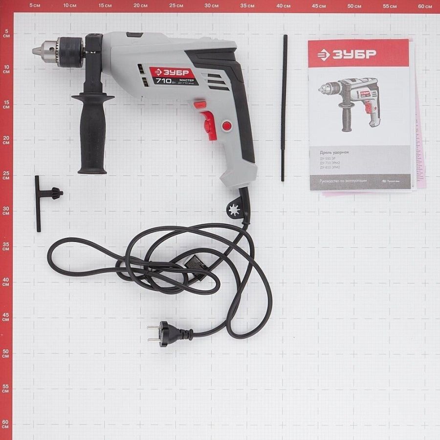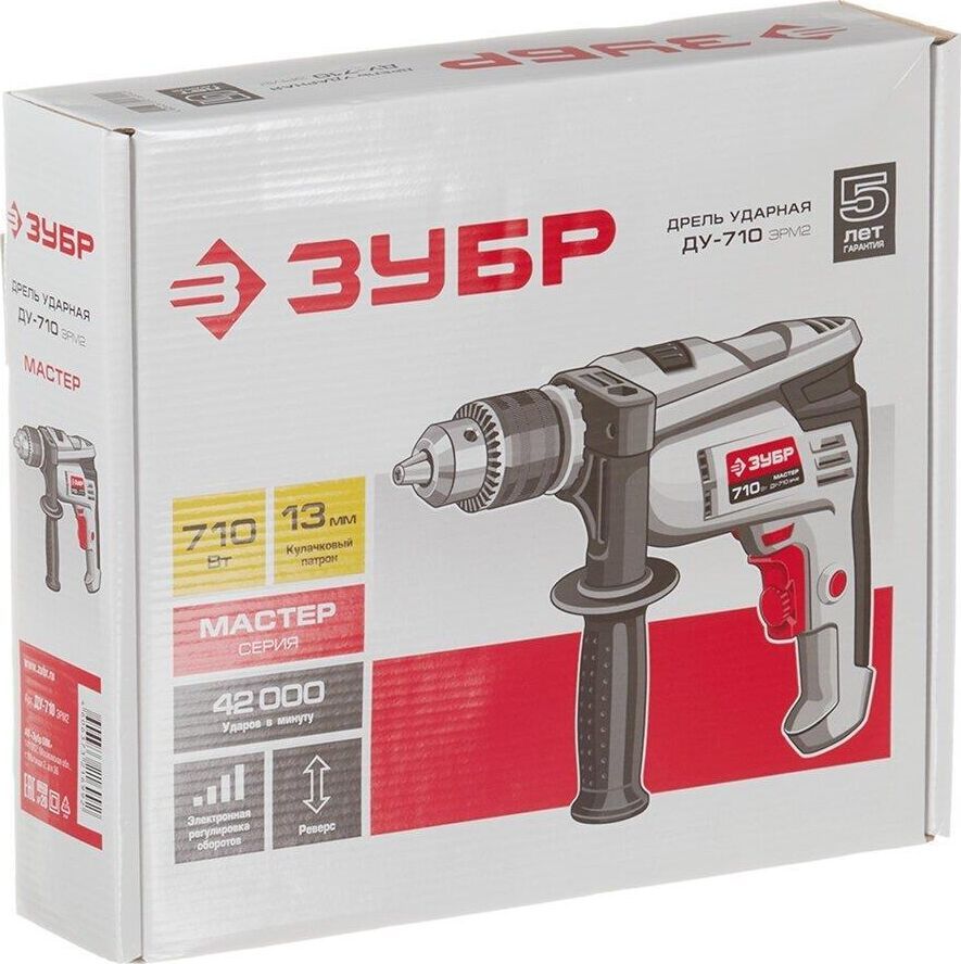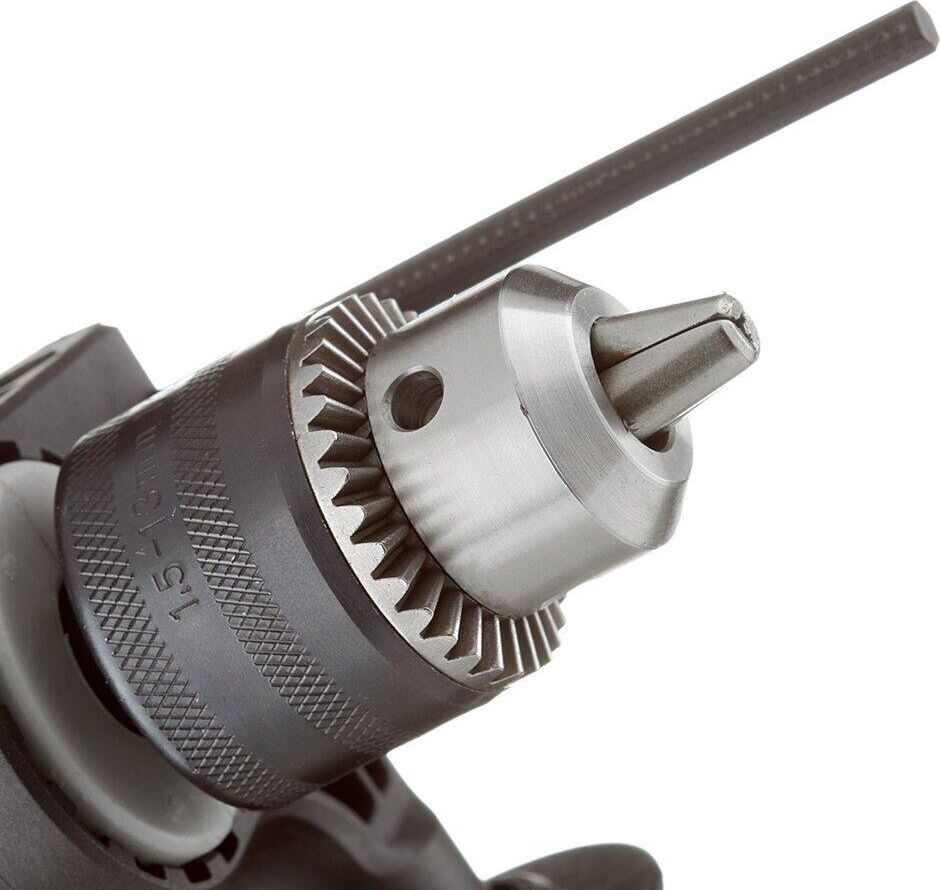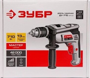 Мощность, Вт 710 Макс. число оборотов холостого хода, об/мин 0-2800 Частота ударов, уд/мин 0-42000 Макс. диаметр сверления (дерево), мм 20 Макс. диаметр сверления (металл), мм 10 Макс. диаметр сверления (бетон), мм 13 Тип патрона ключевой Диаметр патрона, мм 1.5-13 Посадка патрона, дюйм 1/2 Режимы работы сверление/сверление с ударом Количество скоростей работы 1 Реверс есть Электронная регулировка частоты вращения есть Фиксация кнопки включения есть Ограничитель глубины сверления есть Дополнительная рукоятка есть Диаметр шейки под рукоятку, мм 43 Длина кабеля, м 2