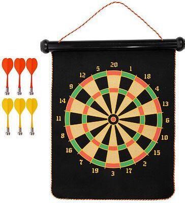 Материалы: фланель, магнитный лист, пластик, металл Тип магнита: NdFeB N35 Диаметр передней мишени: 25 см Диаметр задней мишени: 29 см Размер полотна:38 х 32,5 см 6 дротиков в комплекте Вес набора: 630 г