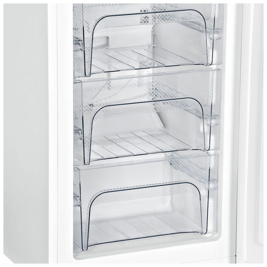 Общее полезное пространство Hyundai CC2056FWT составляет 193 л: морозилка имеет 64 л, а верхняя часть – 129 л. Обе они работают благодаря компрессору, в котором применяется качественный хладагент R600a. Он не создаёт чрезмерного давления на патрубки, поэтому прибор производит минимум шума – всего около 41 дБ. При этом энергопотребление Hyundai CC2056FWT соответствует классу A+ — это примерно 227 кВт*ч/год.