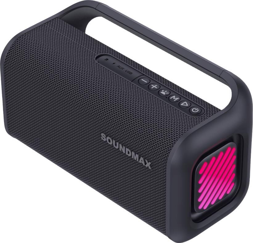 Выходная мощность, Вт 30 Вт Частотный диапазон 50 Гц - 18 кГц Количество и размер динамиков 2 х 3" Эквалайзер Нет Поддерживаемые аудиоформаты MP3, WAV Версия Bluetooth 5.4 Диапазон FM 87.5 - 108 МГц Аудиовход AUX Да Вход для микрофона Нет Разъём USB Да Слот для SD карт Нет Hands-free Да Функция True wireless stereo Да Голосовой помощник Да Дисплей Нет Наличие подсветки Да Защита от воды Да Уровень защиты устройства IP65 Аккумуляторная батарея (тип, ёмкость) Литий-ионная, 3000 мАч Время работы от аккумулятора До 10 часов Параметры адаптера 5 В 2 А Тип разъёма питания USB Type C Комплектация Кабель USB, инструкция Цвет Чёрный Габариты устройства Ш х В х Г, мм 260 х 148 х 128 мм