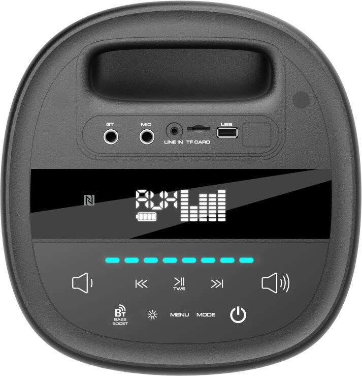 Мощность 170 Вт Максимальная выходная мощность 300 Вт Частотный диапазон 20 Гц - 20 кГц Количество и размеры динамиков 2 х 6.5" + 2.5" Эквалайзер есть Поддерживаемые аудиоформаты MP3, WAv, WMA, FLAC, APE Bluetooth 5.3 Диапазон FM 87.5 - 108 Аудиовход есть Вход для микрофона есть Вход для гитары есть Разъём USB есть Слот для microSD карты есть Громкая связь/Hands-free Нет Голосовой помощник Нет Функция True Wireless Stereo есть Дисплей есть Отключение подсветки есть Наличие подсветки есть Аккумуляторная батарея (тип, ёмкость, напряжение) Литий-ионная, 9000 мАч, 7.4 В Время работы от аккумулятора До 22 часов Тип разъёма питания АС ~220 - 240 В Комплектация Шнур питания, пульт дистанционного управления, руководство по эксплуатации Цвет Чёрный Габариты устройства (Ш х В х Г) 585 х 260 х 250 мм Вес 6.2 кг