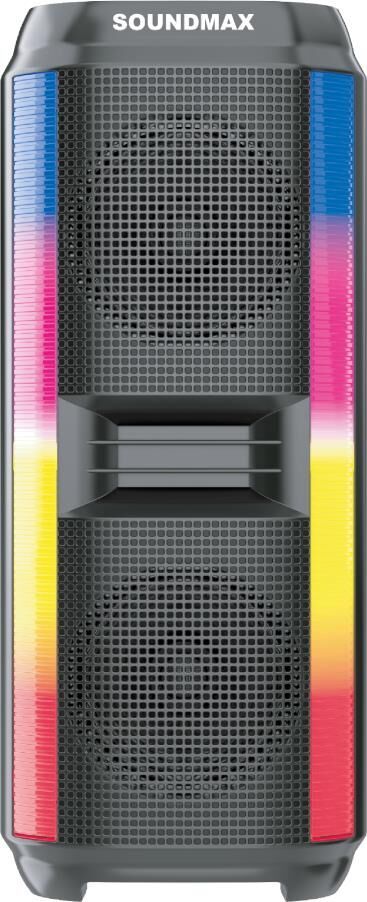ПОРТАТИВНАЯ АКУСТИЧЕСКАЯ СИСТЕМА Номинальная выходная мощность (RMS): 10 Вт Пиковая выходная мощность (PMPO): 20 Вт Динамики: 2 x 4” Bluetooth 5.4 Поддерживаемые аудиоформаты: MP3 Функция True Wireless Stereo (TWS) Цифровой FM-тюнер (87.5-108 МГц) Воспроизведение с USB 2.0 и microSD карты Аудиовход 3.5 мм jack Встроенная аккумуляторная батарея: 1500 мАч Время работы от аккумулятора до 6 часов* Многоцветная LED подсветка Размеры устройства: 384 х 160 х 156 мм Цвет: черный