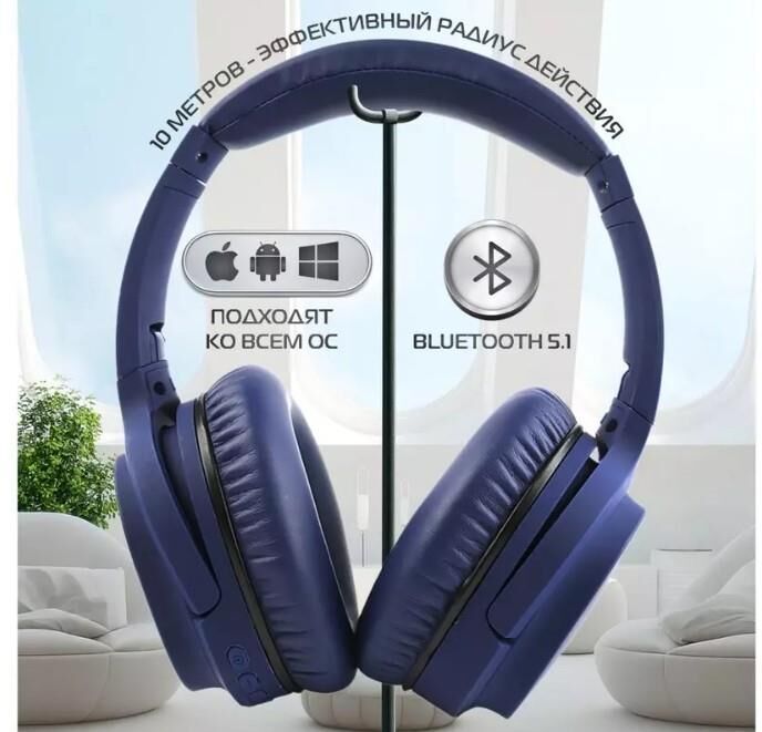 Накладные Bluetooth наушники с шумоподавлением (ANC). Версия Bluetooth: 5.1; Эффективный радиус действия: до 10 м.; Частотный диапазон: 20 Гц - 20 кГц; Чуствительность: 110 дБ; Сопротивление: 32 Ом.; Встроенный микрофон; Активная система шумоподавления(ANC); Складная конструкция; Разъём для подключения: microUSB; Вызов голосового помощника; Переключение треков; Регулировка громкости.