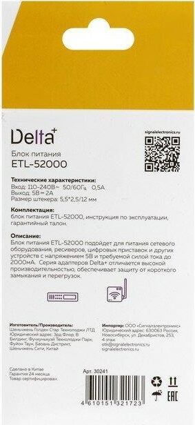 Блок питания предназначен для питания от источника переменного тока 110-240В приборов с напряжением 5В и максимальным выходным током 2000мА, разъем штекера 5,5*2,5/12мм, выходное напряжение 5В, входное напряжение 100-240V, 50-60Гц, фирменная цветная коробка, полярность положительная.