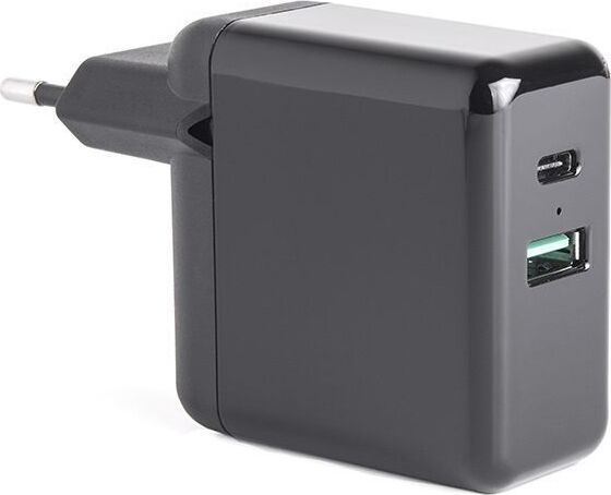 Блок питания для гаджетов, цвет черный, тип штекера USB A, Type C, выходное напряжение N/A, выходной ток USB A: 3.6-6В 3A; 6.2-9В 2A; 9.2-12В 1.5A, выходной ток Type C: 3.6-6В 3A; 6.2-9В 2.7A; 9.2-12В 2.3A, входное напряжение 110-240В 50-60Гц, упаковка блистер, полярность N/A, защита от короткого замыкания, защита от перезагрузок.